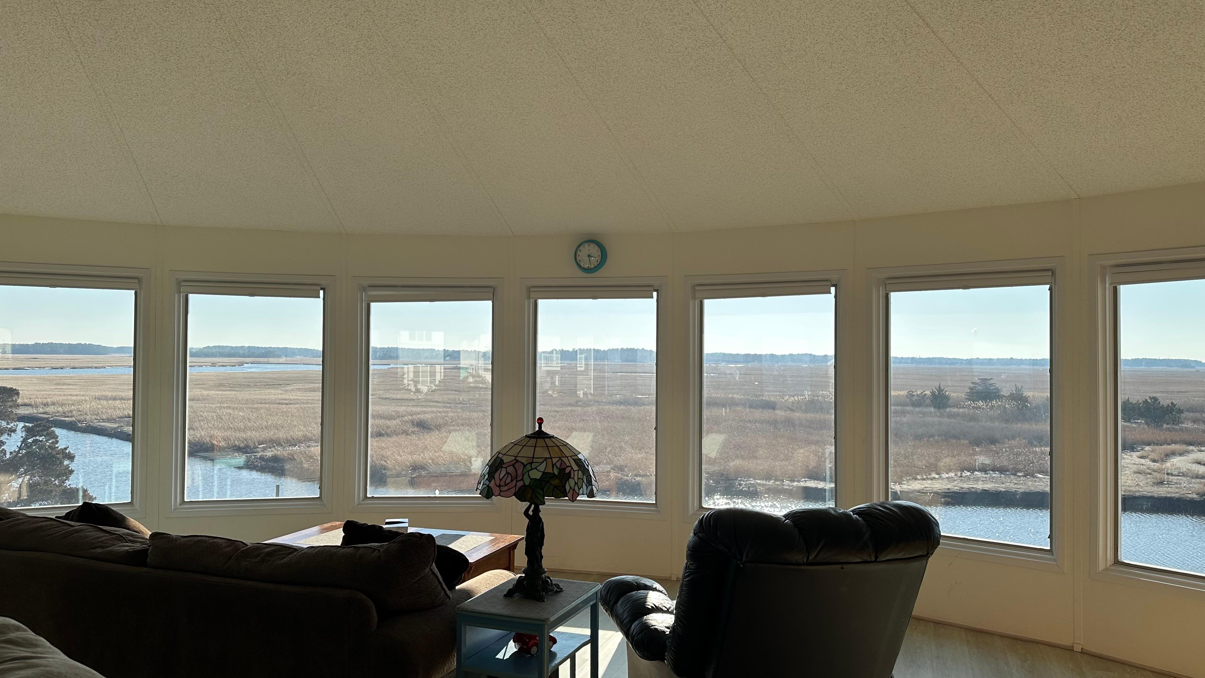 Unique round house with stunning 360 degree views directly on the estuary, where you can fish, kayak or take a short walk across the street to enjoy Broadkill Beach. For those looking to relax, the view provides wonderful bird watching across the wildlife refuge at the back door. You can see the sun rise over the bay in the morning, and set behind the preserve in the evening. The exceptional view makes this house like no other and offers a calming environment for not only vacationing, but working or doing virtual school if you crave a change of environment.