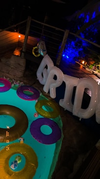Pour notre fĂȘte la plus populaire, un luau avec traiteur, nous volons dans des leis de fleurs fraĂźches d'HawaĂŻ, projetons des paysages hawaĂŻens et des images de volcan sur le grand Ă©cran de 25 pieds et rĂŽtissons un cochon entier. Une fois Ă l'intĂ©rieur de notre environnement tropical chaud, vos amis et votre famille oublieront que c'est la mort de l'hiver Ă l'extĂ©rieur et parleront de votre fĂȘte unique pour les annĂ©es Ă venir.