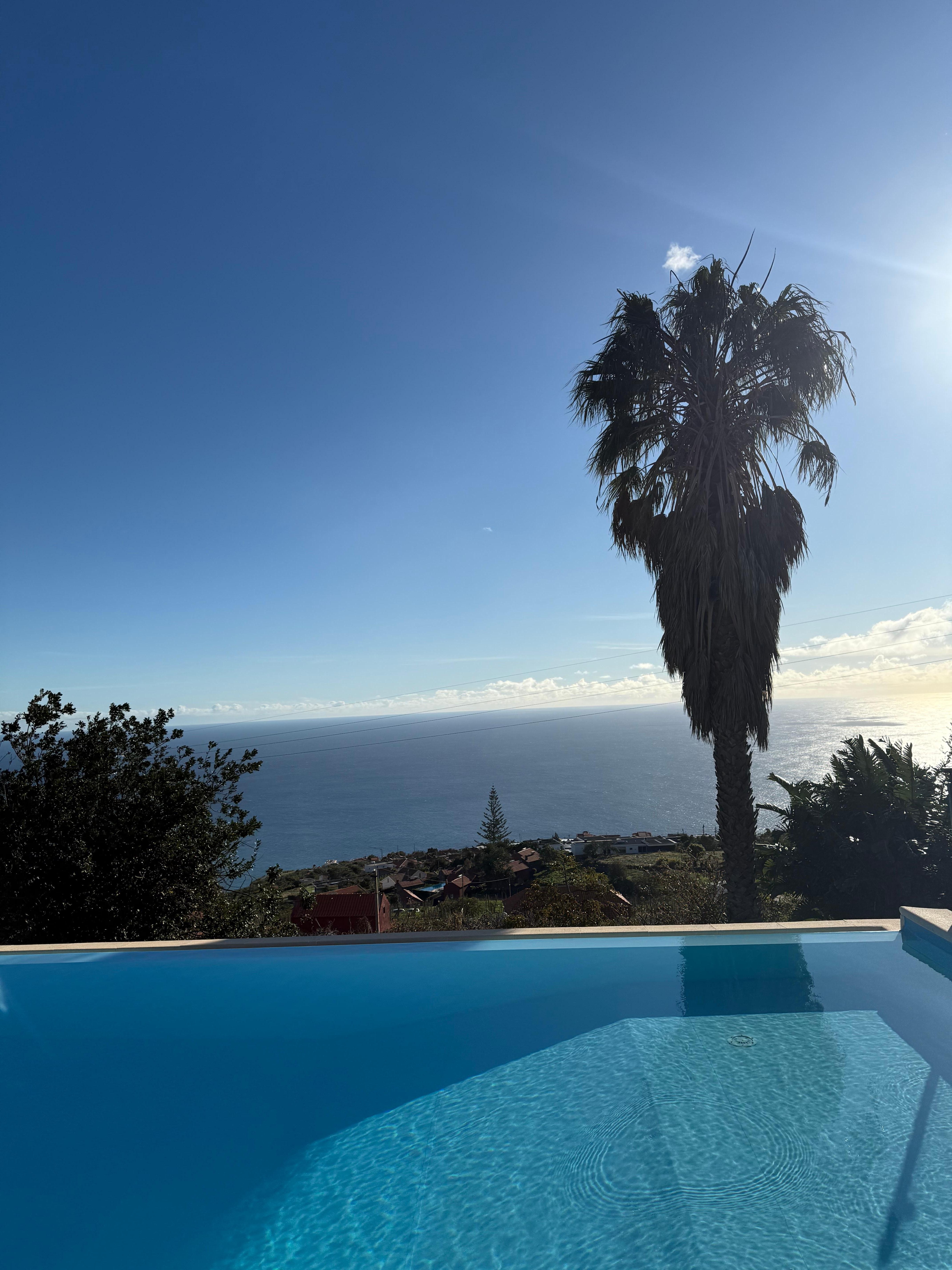 Ouvrez les grandes fenĂȘtres panoramiques et connectez le salon avec la grande terrasse et la piscine et la palmeraie adjacentes. Ils surplombent la quinta Ă vin du quartier et l'ancienne Ă©glise du village et Ă©coutent le «Sound of Calheta».