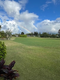 Emmalani Oasis offers a large covered lanai, with ample seating, a picnic table, and a gas bbq. The space has picturesque views of the majestic Kauai mountains, landscaped gardens and golf greens. You may see a waterfall or two. A wonderful space for outdoor living, enjoy an early morning cup of coffee, a family dinner or a BBQ lunch on this private lanai area while enjoying the breathtaking views of Paradise.