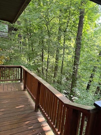 Spend your mornings on the covered deck and your evenings in the hot tub or by the porch swing. With peaceful WOODED VIEWS and a quiet setting, the outdoor areas offer a true Smoky Mountain retreat. A CHARCOAL GRILL and picnic table make outdoor dining a breeze.