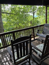 âą Covered deck with porch swing and rocking chairs