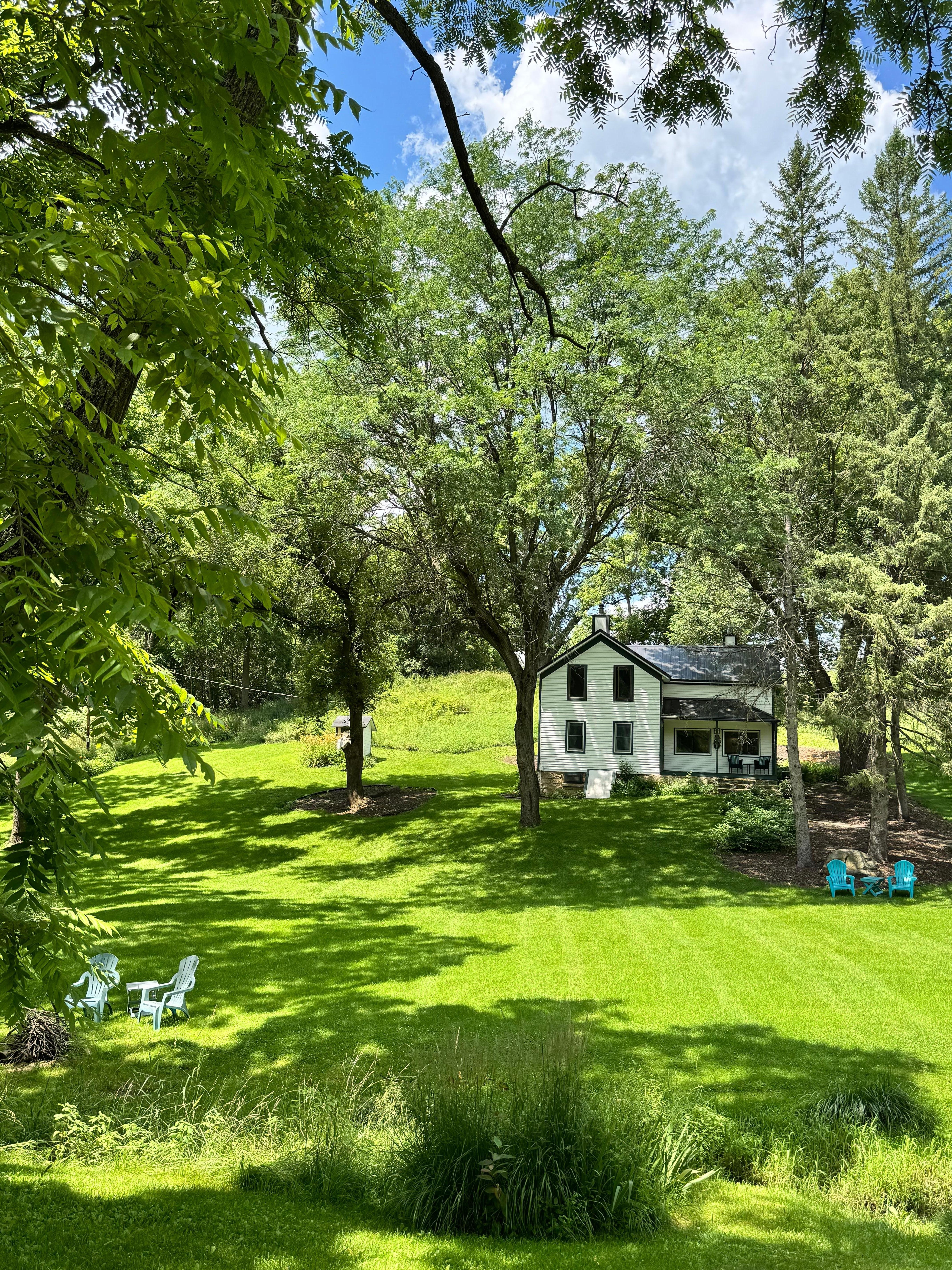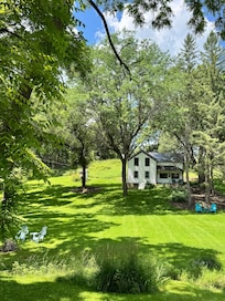 If you are a fan of the farmhouse aesthetic and rural surroundings, this place is for you. The house is equipped with most of the modern amenities you need, plus vintage doorknobs and original wood floors. For anyone with mobility challenges, though, you may want to find a place with easier access. There are stone steps of varying height up to the front porch with no handrail, and all bedrooms are up a flight of steep narrow stairs.Thankfully, we had some young twenty-somethings to help us carry in our bags and provisions.Communication from the hosts was good. We were provided with information to pick up groceries ahead of time, because the closest store is 20 mins away. You don't want to forget the milk! And it was made clear ahead of time that cell phone coverage was sketchy due to the rural location, so it did not come as a surprise to find "no bars".Things that weren't quite what we expected included a coffee maker that wouldn't brew a full pot, maybe needed descaling? We found most cooking needs, but there was no foil. Photos of the property we viewed prior to booking showed a cast iron wood burner in the living room, but we found it had a padlock on it so it cannot be used for heat or ambiance. No doubt host concerns that it could be a fire hazard or an insurance risk.So all in all, it met our space needs but there were also things that were trifle disappointing. It's a beautiful location and probably even better in summer or fall.