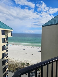 Condo with ocean view that overlooks the emerald waters and white sandy beach from your own top floor private balcony. Spacious living room where you can relax in the newly remodeled space. This air-conditioned unit features 1 bedroom (queen bed), sleeper sofa, murphy bed in the living room, flat-screen TV, kitchen with dishwasher & microwave, jet bath / shower in the private bathroom. WiFi and cable is included. There is a community washer and dryer on the first floor as well as a gym, tennis & pickle ball court for guests use.