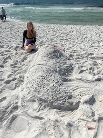 Perfectly positioned right on the beach, this gulf-front family condo is the perfect combination of comfort and convenience! You'll love watching your favorite movies and shows on the large flatscreen TV while you bask under the central AC after a day of sightseeing. The living room has access to a spacious balcony furnished with Adirondack chairs and with gulf views, the ideal place to wake up with your first cup of morning coffee. Take advantage of the full kitchen to whip up a delicious breakfast, then head out to spend the day on the beach. The outdoor shower is right at the pool area, so you can easily spritz away the sand when you come back. Have some work to complete while you're here? The home's high-speed internet and free WiFi make it quick and easy for remote workers and students to complete their projects on time. Submit your task then reward yourself with a trip to the shared pool and hot tub. The private washer/dryer will keep everyone's clothes clean, so you can afford to pack light for your trip. The elevator will make accessing the condo quick and easy. Whether you're here for a fun beach adventure with friends or a relaxing family getaway, this beachfront condo will provide you with lots of sun-kissed memories.