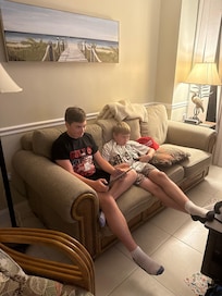 2 bedroom beachfront condo with long balcony overlooking beach. Granite and stainless kitchen, ceiling fans, large TVs in each room , King bed in master and twins in guest. Beach chairs and cooler for use. Sofabed in living room. Beautiful heated pool and easy beach access.