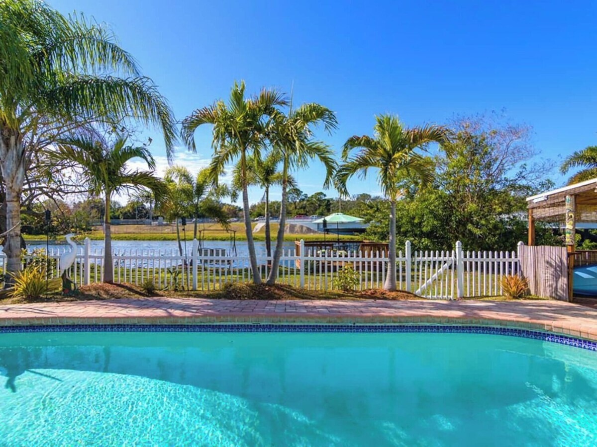 private heated pool and canal for kayaking or fishing. Public boat launch nearby as well.