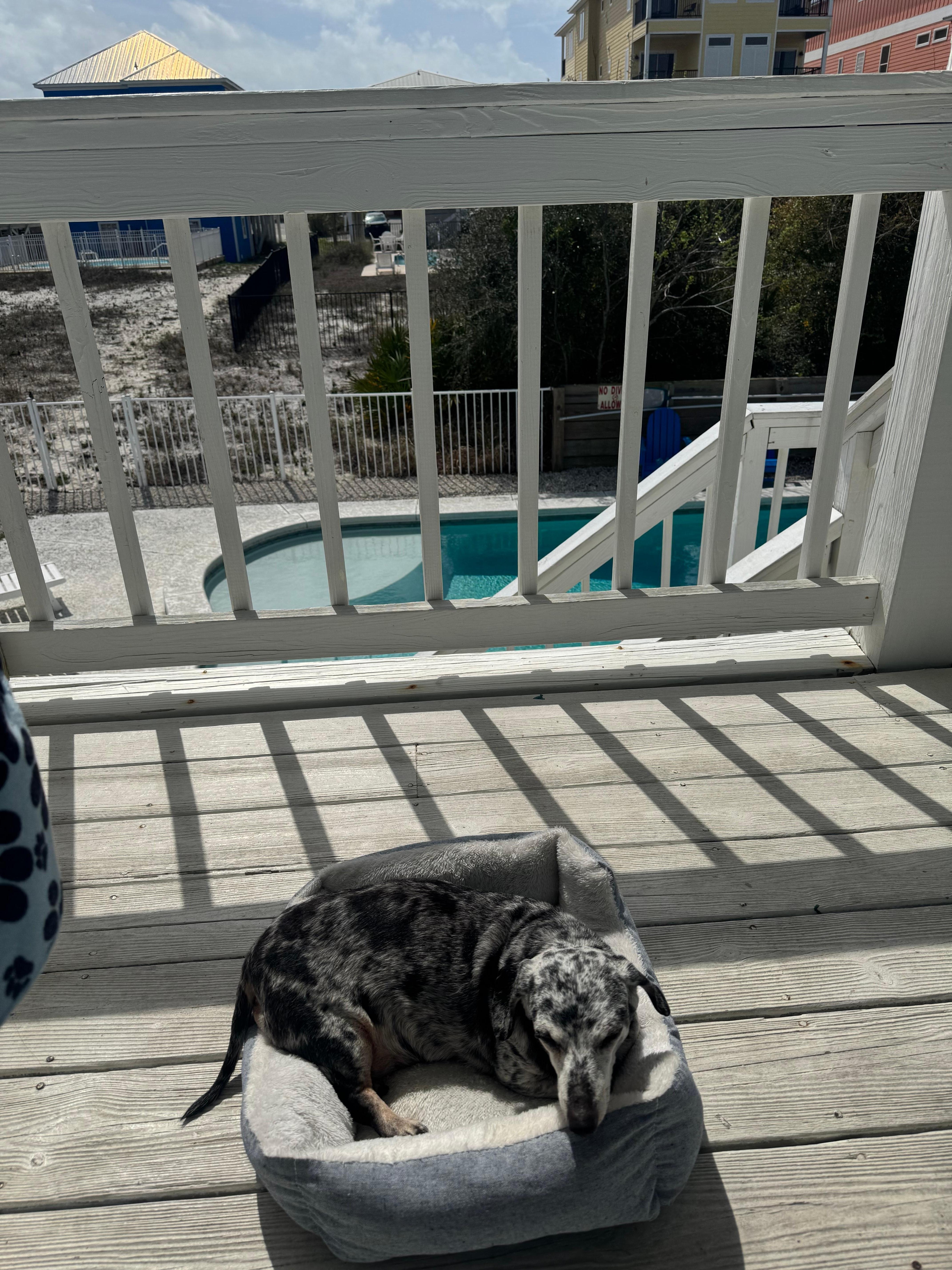 With sleeping accommodations for up to 9, Sea Ya Real Soon is the perfect size for a family to get away. The master bedroom is equipped with a king-sized bed to sleep two, an ensuite bathroom, and access to the balcony overlooking the pool. Bedroom #2 has a queen-sized bed to sleep two. Bedroom #3 has a twin/full bunk bed to sleep 3. The living area is equipped with a sleeper sofa to sleep 2. Bedrooms #2 and #3 will share the hallway bathroom.