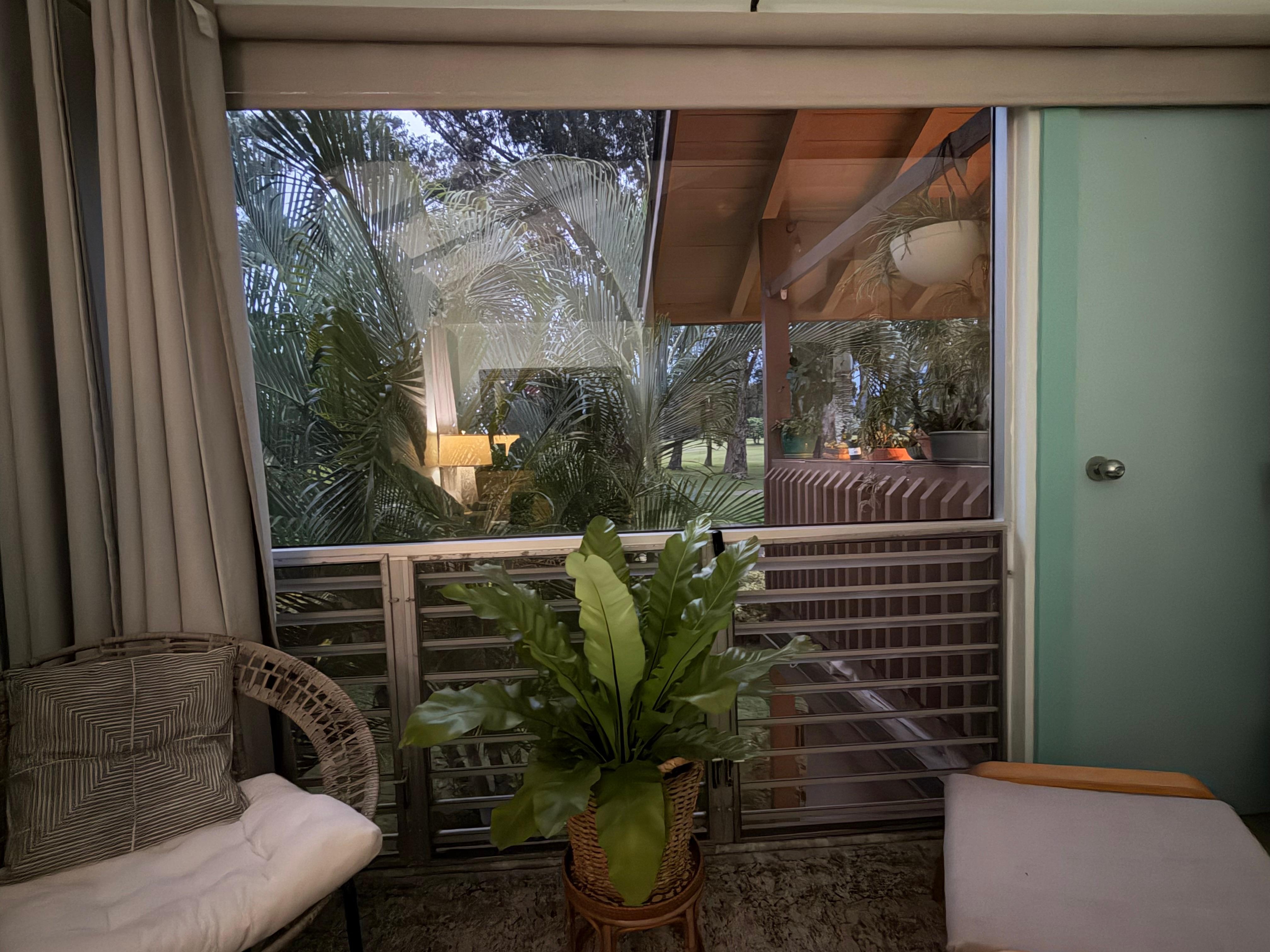 Not just outside, but inside too, it feels like glamping without sacrificing any modem convenience. Tropical plants, soothing colors, natural materials, with modern Hawaiiana decor will reset you on island time, in no time at all.