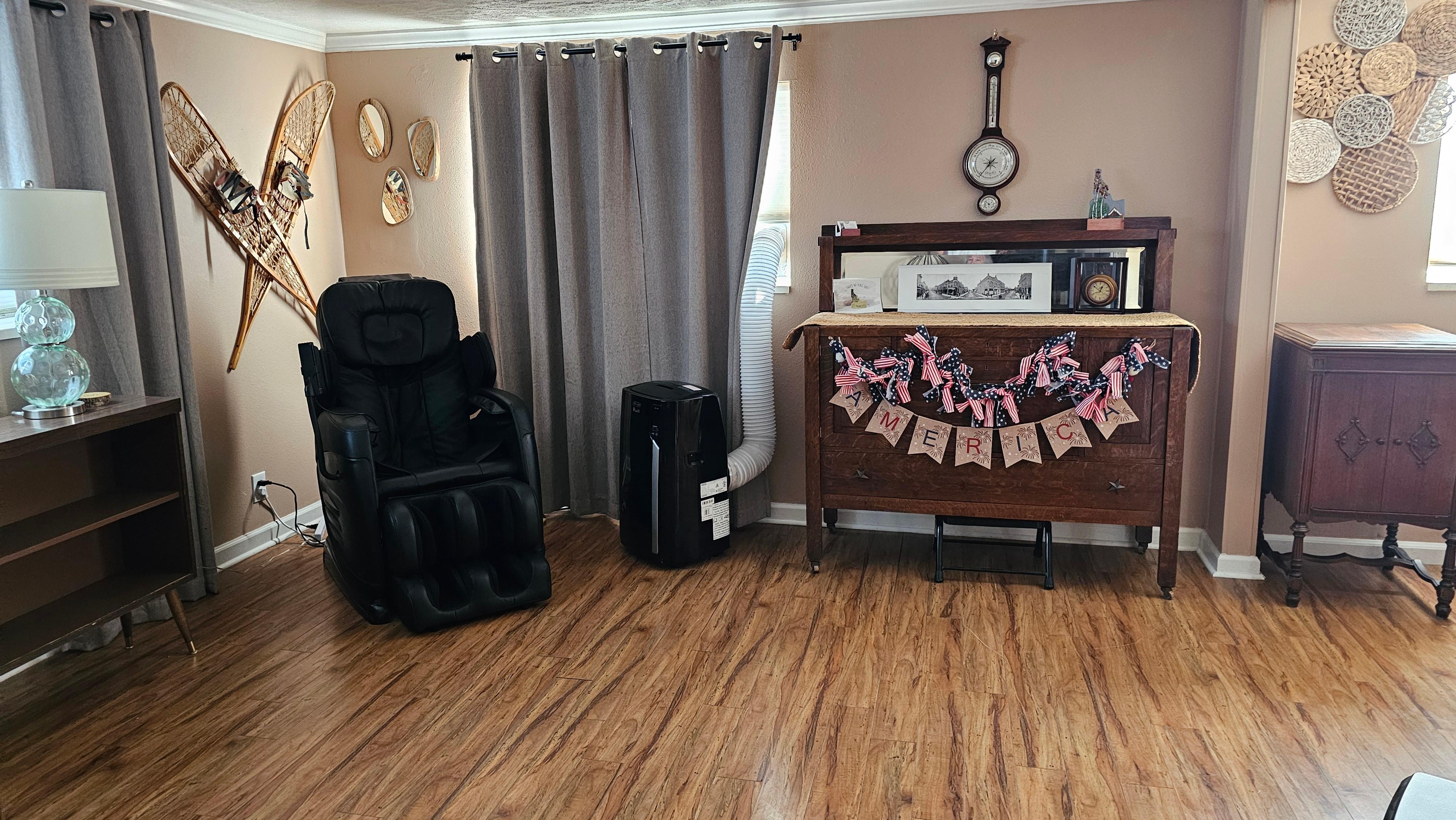 Relax in a serene patio oasis & a rejuvenating massage chair after a long day!