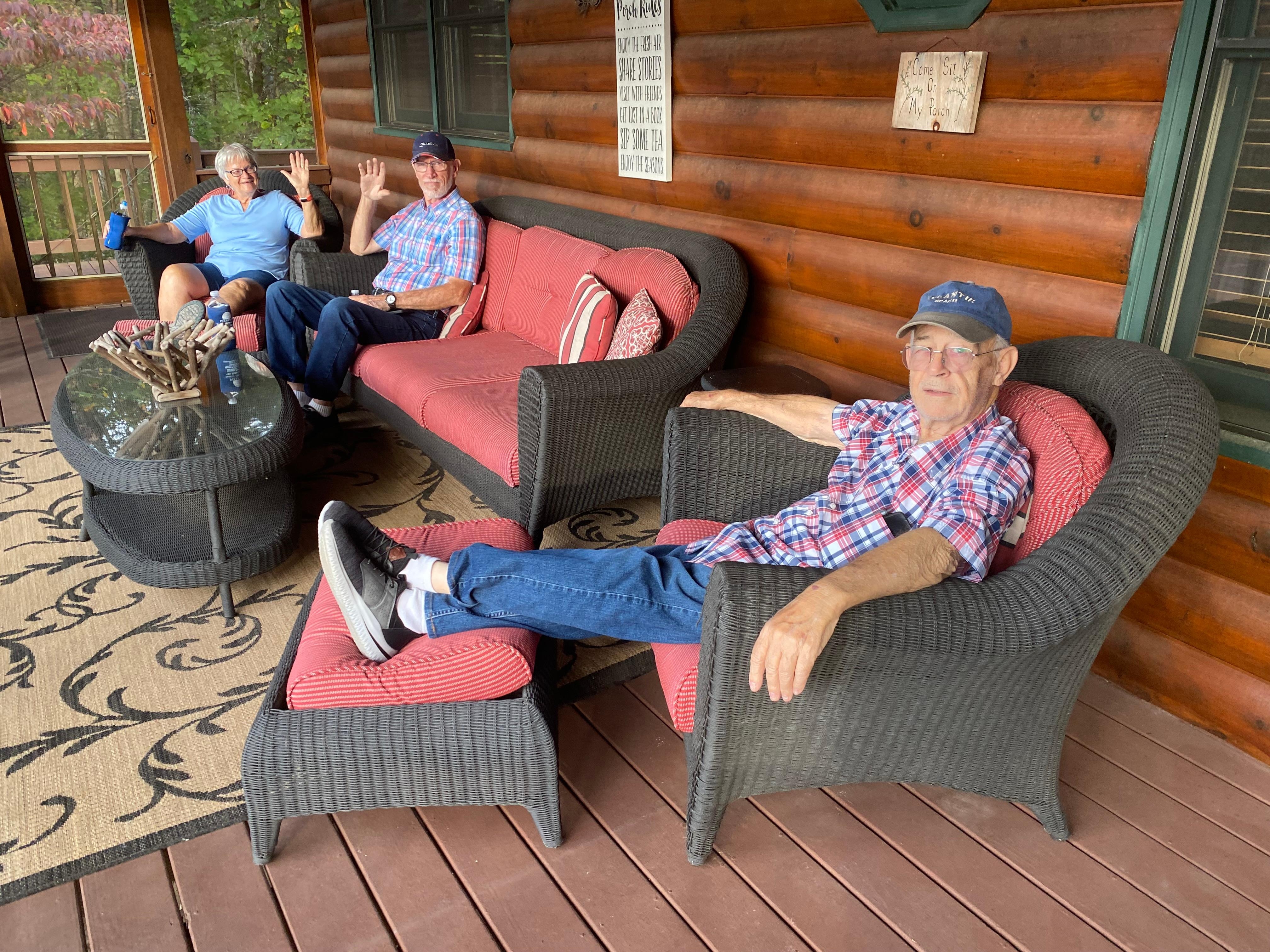 The porches and decks are fully-furnished with mountain style chairs, rockers, couches, and swings that accommodate relaxed lounging and provide a great place for bird watching the many species of birds that visit. Roast hot dogs, marshmallows, and visit at the outdoor fire pit while enjoying picturesque mountain scenery. Unwind at the end of the day by taking a dip in the hot tub or sip wine on the swing.