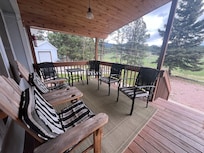 Enjoy a quiet location close to town and on paved road. This property sits directly in between the towns of Hill City and Keystone! Have a cup of coffee on the front porch and watch the famous 1880's train roll past you a on its way to Keystone. Come evening have a seat and enjoy the wildlife in the meadow directly below you. Easily run into Hill City or Keystone for dinner or groceries or stay home and grill. A short car ride gets you to all of the major attractions including Mt Rushmore (20 minutes) & Crazy Horse (16 minutes) or go the other direction to Deerfield Lake for fishing and boating. The driveway is a little steep and I have had a few guests have concerns about riding motorcycles up and down. Once up the hill there is ample room to turn around a vehicle but I would recommend not taking your trailer to the top. If you do you will most likely be backing it down. There is however a nice flat spot at the bottom of the hill to park a trailer off the road in a safe location.