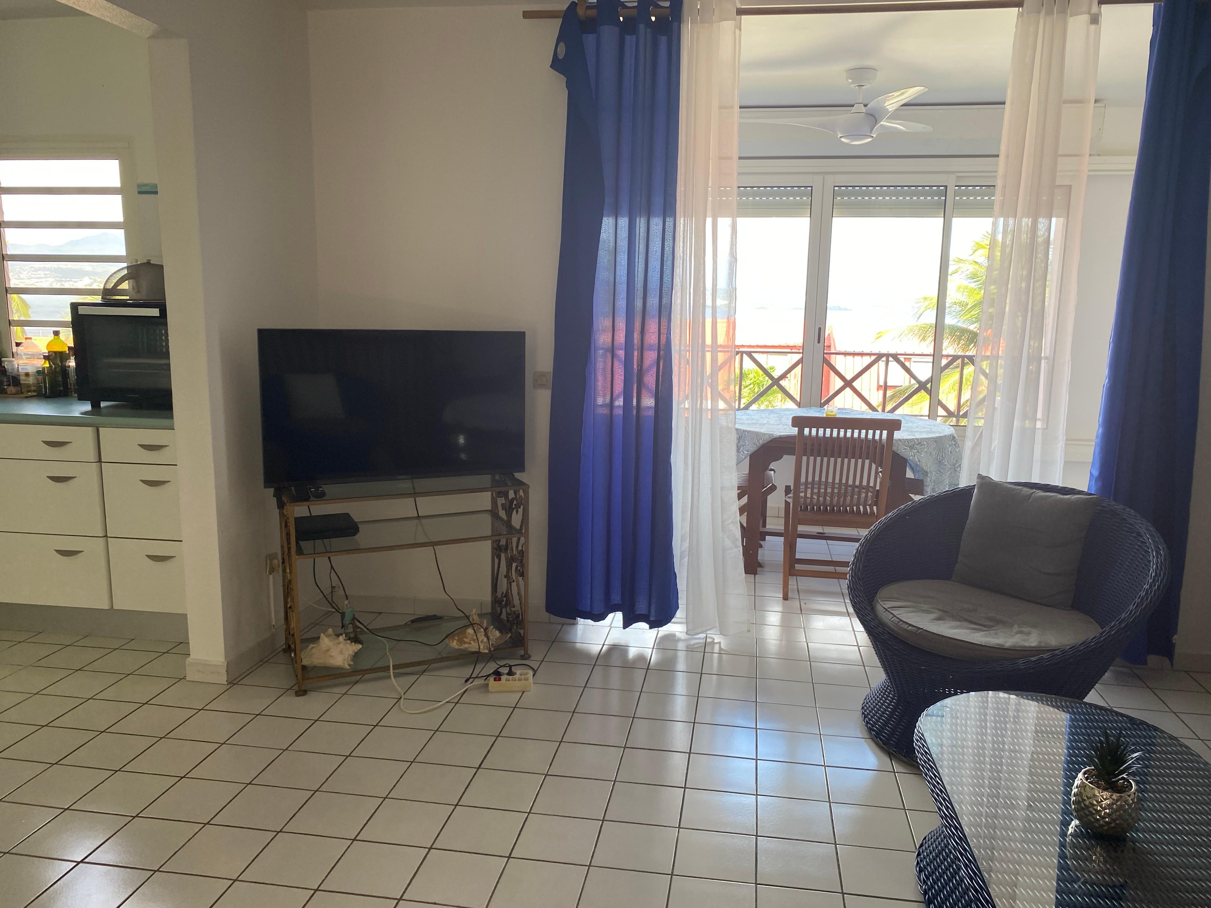 Duplex lumineux avec vue mer, situĂ© Ă  l’Anse Mitan, dans les Trois-Îlets, Ă  quelques minutes Ă  pied de la plage, de la marina et des restaurants.