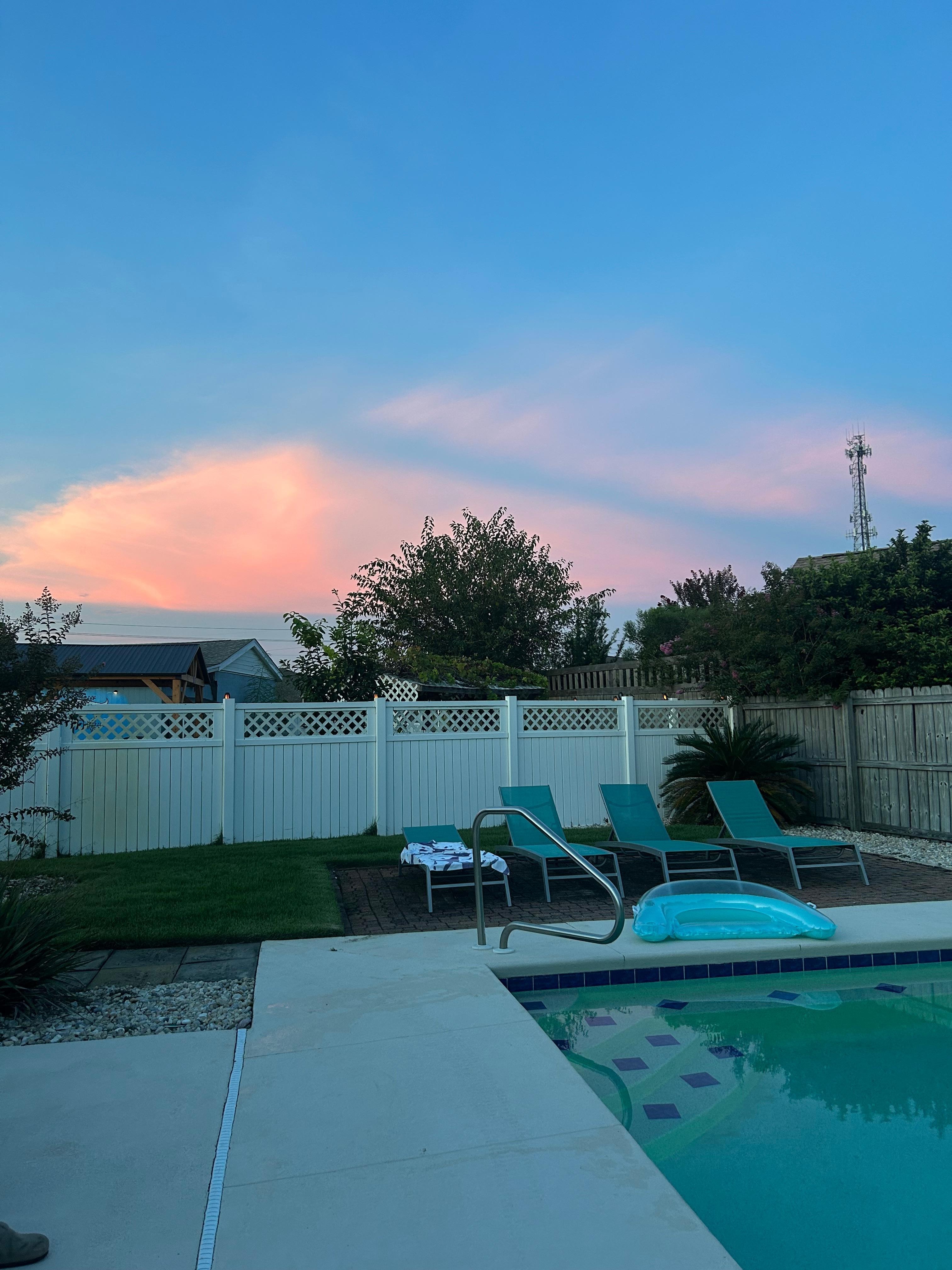 In the evening, after relaxing at the beach all day, you can come home and shower off outside and take a quick dip in the pool. Take advantage of the large, fenced in yard by playing ball with the kids.