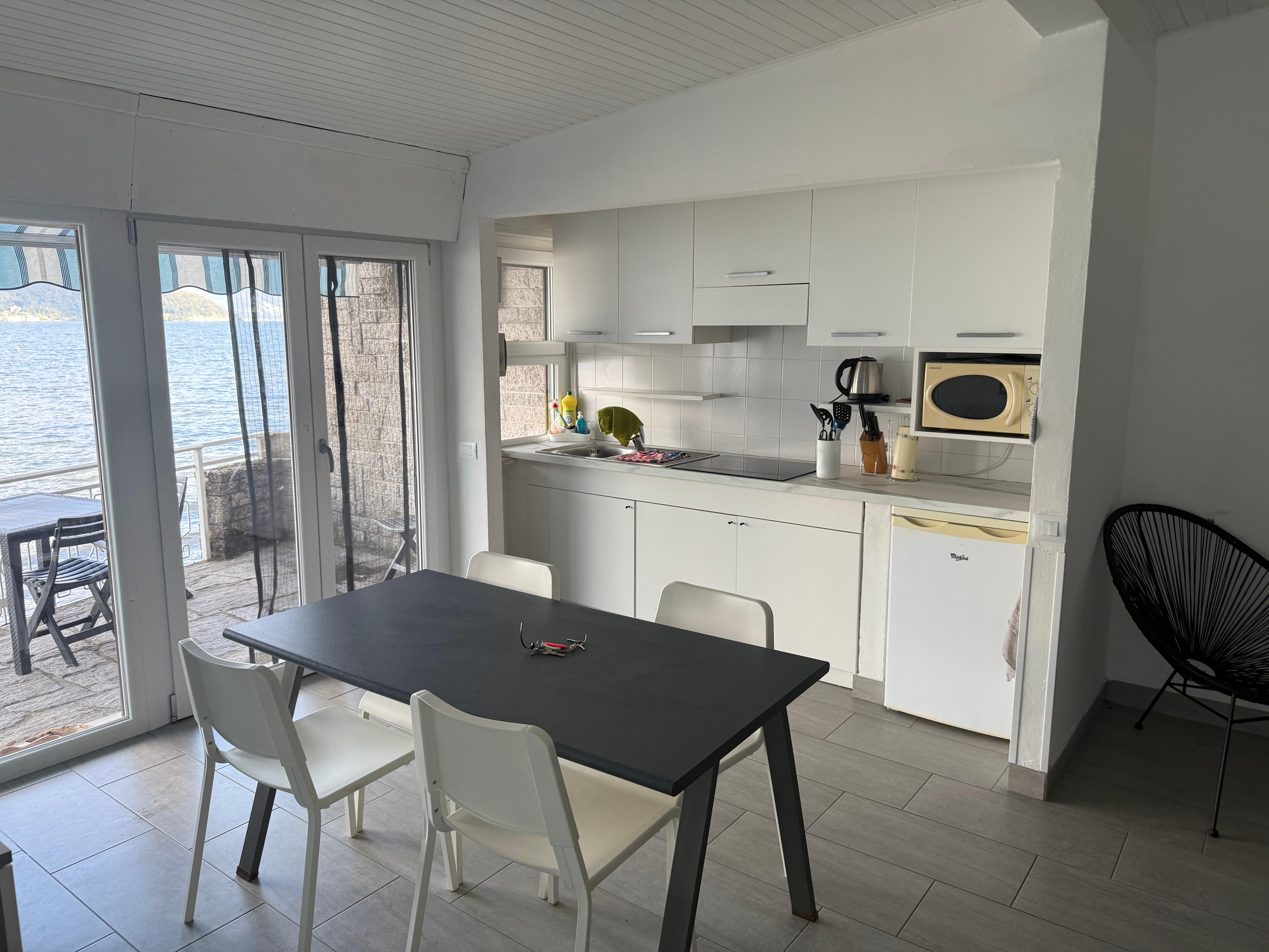 La maison terrasse 3 chambres moyenne meublĂ© est situĂ© dans la banlieue sud de Germignaga. Il est toute la journĂ©e emplacement ensoleillĂ© sur le lac et sur la plage. Depuis la route du lac passe derriĂšre la maison, vous pouvez facilement obtenir de la terrasse par une porte de jardin Ă la plage publique. Ă pied, vous pouvez rejoindre le centre historique de Germignaga avec ses cafĂ©s, boutiques, restaurants, etc. confortablement Ă environ 400 mĂštres. Le voisin Luino Ă cĂŽtĂ© de GERMIGNAGA avec son cĂ©lĂšbre marchĂ© mittwöchlichen, la promenade spacieuse et la jetĂ©e des voies publiques. Cela ouvre la possibilitĂ©, Ă partir de lĂ , vous pourrez explorer de nombreuses destinations intĂ©ressantes de l'eau. Depuis le salon / salle Ă manger d'environ 60 mĂštres carrĂ©s maison, ainsi que de la terrasse avec auvent, vous pouvez profiter d'une vue imprenable sur le lac et donnent sur le cadre paisible des sommets des Alpes suisses et les pentes boisĂ©es de la rive PiĂ©mont. Vous pouvez garer votre voiture Ă la maison sur un abri partiellement couvert dans la propriĂ©tĂ© fermĂ©e. Disposition des piĂšces: sĂ©jour / salle Ă manger avec canapĂ©-lit gigogne pour une personne (ou deux petits enfants), la tĂ©lĂ©vision par satellite, vue imprenable sur le lac et l'accĂšs Ă la cuisine terrasse avec micro-ondes et belle chambre vue sur le lac avec un lit double (matelas simples) 2. Chambre avec deux lits simples salle de bain avec douche et amicale fenĂȘtre Petite salle de stockage Ca. terrasse 9 mÂČ avec auvent, vue imprenable sur le lac et les montagnes en face et un accĂšs direct Ă la plage publique