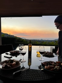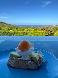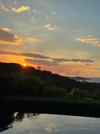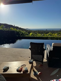 This beautiful villa has a main house, and a casita to share with your friends and family. The 3 bedroom, 3 1/2 bath main home, and the 1 bedroom, 1 bath with kitchenette casita provides each guest with private accommodations, an ensuite bathroom, and full ocean views. The beds and pillows are sure to allow for a great night's sleep, and the home is spacious enough to give each guest their own privacy. We have set our home up to be of the utmost comfort for family and friends, and also for guests during the few times we offer our home for vacation rentals. As you step outside you will enjoy the expansive outdoor living space, built-in BBQ and the 52-foot-long saltwater infinity pool. The outdoor living area provides you some of the best sunsets around, and if you are lucky, you will get some tropical rains that create the hum of the flowing river to your left while also enjoying the sound of ocean breaks drifting up the hillside in front of you. Early morning coffee or tea is shared with parrots, howler monkeys, butterflies and dragonflies. This truly is a nature lovers dream!