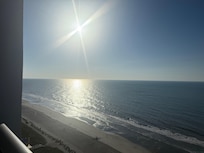 With a wall-to-wall, floor-to-ceiling full view of the Atlantic Ocean, sleep in the luxuriously appointed master bedroom furnished with a comfortable king-size memory foam mattress, a large HD TV, and Wet Bar. The private bathroom is outfitted with a tub\shower and a new beautiful modern vanity. Get the day going by grabbing a cup of coffee and enjoying dolphin watching from your private master bedroom balcony.