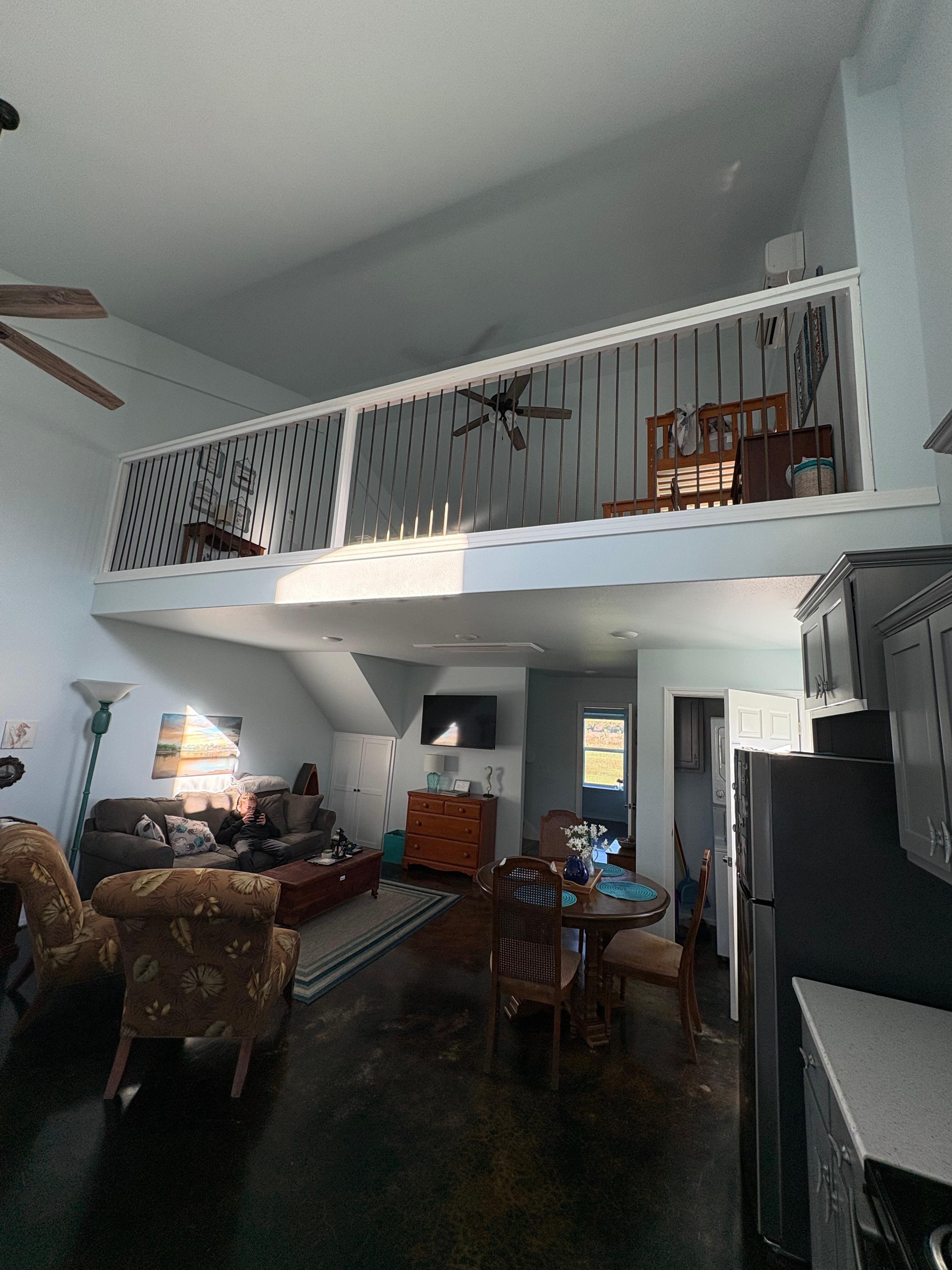 Spring is beautiful on Grand Lake as the White Pelicans migrate and stop here, the trees are blooming, and the temps are mild for boating. Our home is in a very quiet and safe neighborhood. đ Relax on the front porch, fish or launch a boat within steps of your door at the public lake access ramp. (Ramp can be too shallow during some seasons) đ We are close to the quaint towns of Grove or Monkey Island for all your dining, shopping and entertainment desires. Main floor has living room, dining, fully equipped kitchen, private bedroom, full bathroom and washer/dryer. Upstairs Loft has large sitting area, partitioned corner with full-size bed, separate twin bed, and bunkbed with lower full-size bed, upper twin, and twin trundle that pulls out. Loft also has a half bathroom.