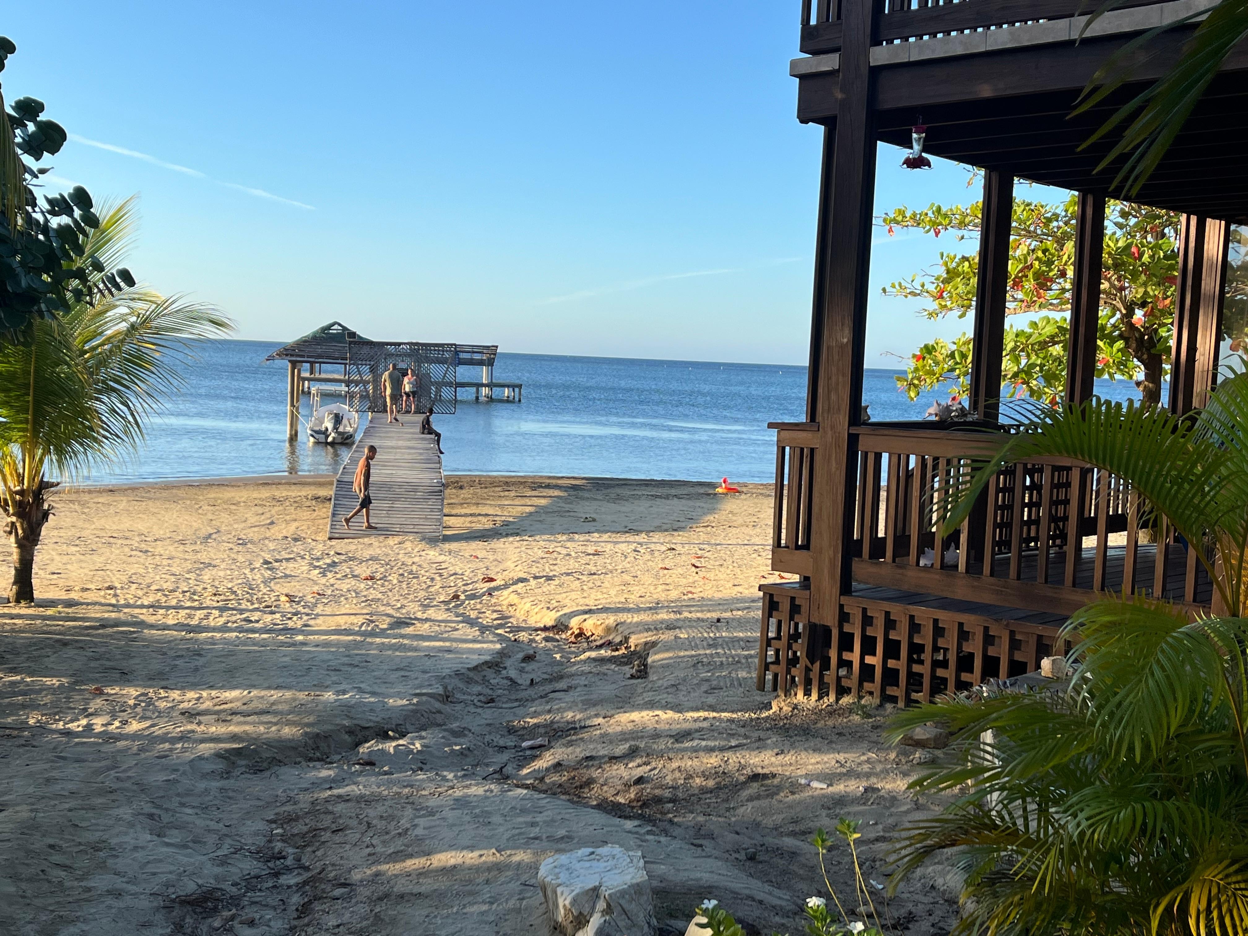 Just off the pier to the right is a natural deep water channel that allows larger sea life to come and go., Often seen are eagle rays, turtles, grouper, and large parrot fish. This natural opening is easy for boats to pick you up for fishing, scuba diving, snorkeling and touring.