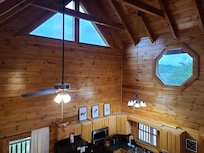 Your family will find the cabin's open concept interior very spacious and enjoyable. The warm wood throughout and high cathedral ceilings give the property a relaxing and welcoming atmosphere.