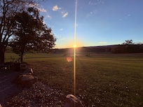 We rent this cabin a few months a year and have it available to visiting friends and family the rest of the time . It is located in our front field of our 17 acre property and has a nice deck overlooking the pasture across the street and faces west so you can enjoy watching the sun set . It is a relaxing and clean home to use as your sightseeing base.
