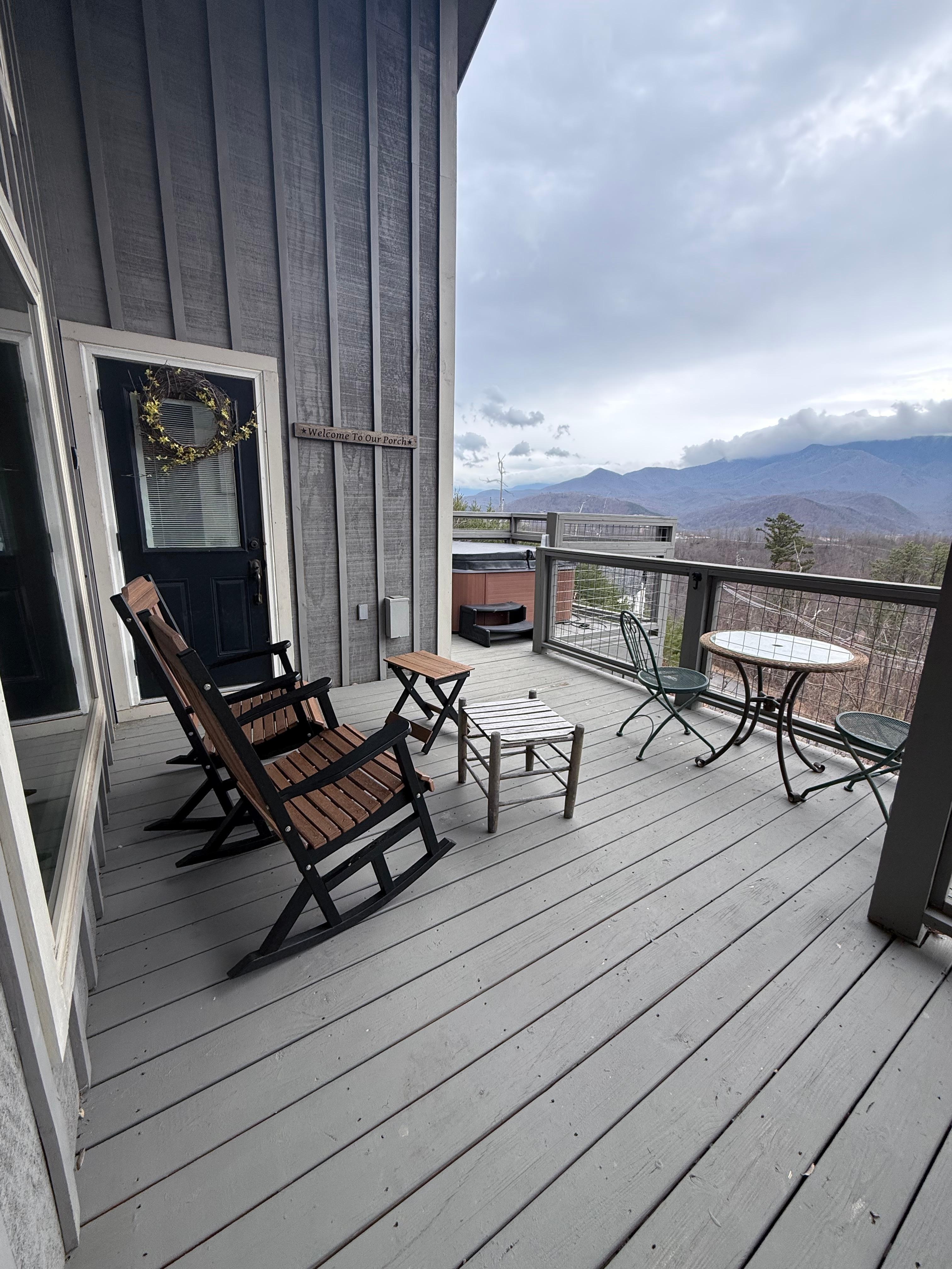 Relax in oversized hot tub as you gaze at gorgeous mountain views. Cook in the fully stocked kitchen while also taking in the views. Enjoy morning coffee on the covered deck.