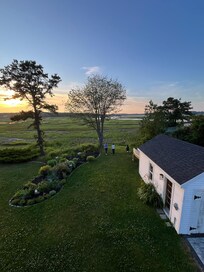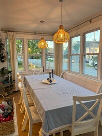 marshview /seaside estate . The renovated portion of the property is quintessential New England. It features a cozy dining nook, sunporch sitting area, high-end kitchen with modern quartz counter-tops and oversized island. Construction of the addition was completed this July, and it is a stunner!