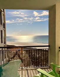 The living room isnât the only space with beautiful views, the primary bedroom also features balcony access and panoramic beach views. There is absolutely no better way to wake up than to the crystal blue waters and sugar-white sand beaches. The private, spacious balcony provides a wonderful spot to start each morning with a fresh cup of coffee and end each day with a coastal cocktail as you savor the sights and sounds of the beach. The owners of Navarre Towers #505 â A Joyful Breeze have thought of everything one might need to simply whip up a sandwich for lunch or craft a home-cooked meal for dinner. Gather around the dining table to enjoy a delicious meal and reflect on your day in the sun, planning for what tomorrow holds.