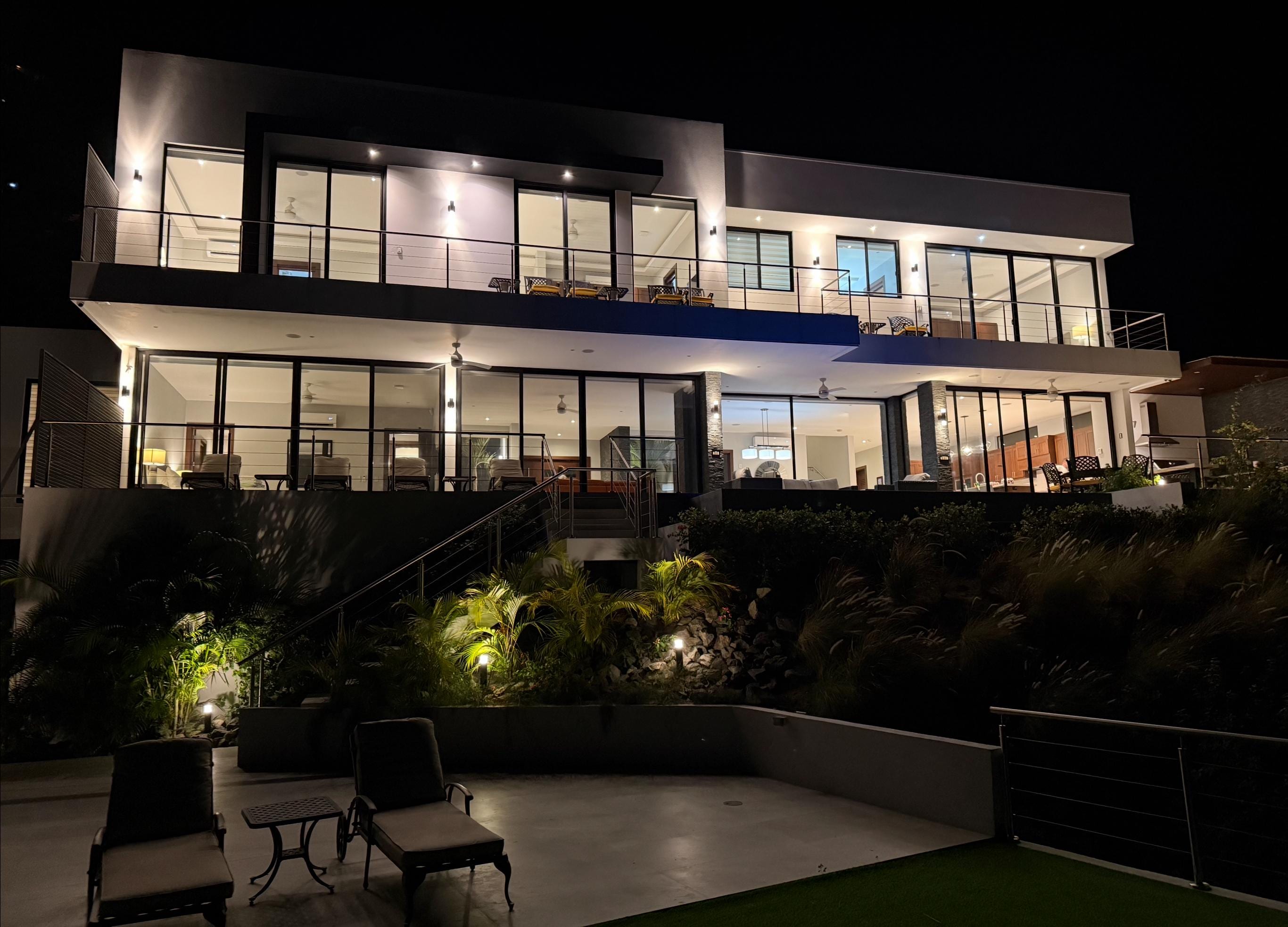 Villa Vida Moderna (Modern Life) is a stunning home has 4 king suites, sleeping up to 10 guests across 6,700 square feet of interior/exterior space. The home features high speed 200Mbps fiber optic internet with Smart TVs in each room, modern finishes, exquisite furnishings, and every amenity you could want on vacation.