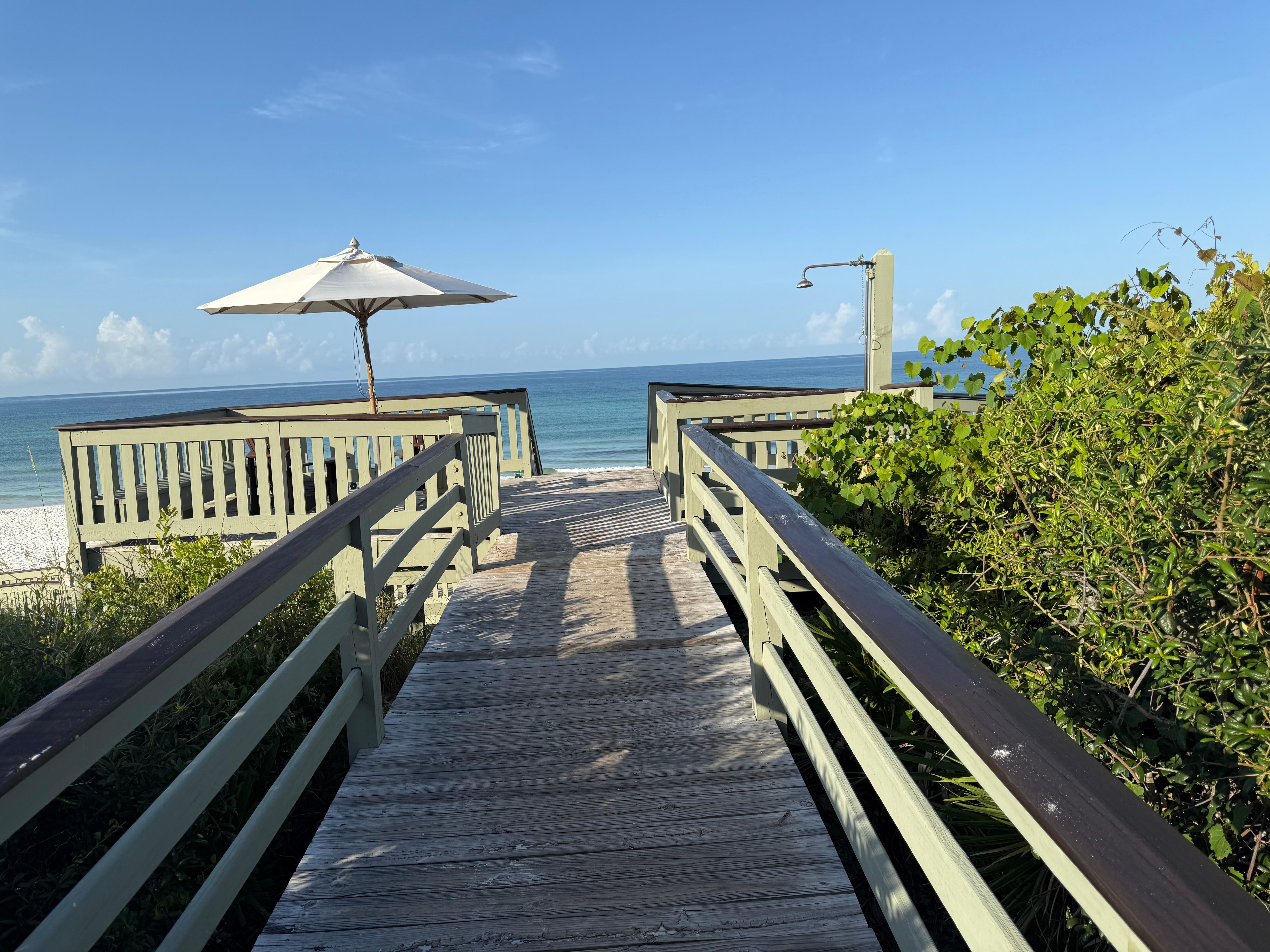 Freedom at the Beach house is located at 18 St. Georges's Lane, Rosemary Beach, FL, 32413, on the South side of HWY 30A (Gulf side), so no highway to cross. This ideal location is where you can be on the beach after a short stroll (takes about 1 minute, 150 yds) down Round Rd, just steps from the Coquina Pool (60 yds), and across from the playground (35 yds) for a variety of outdoor activities. Being on the eastern side of Rosemary offers a less crowded area with ease of access to the amazing amenities Rosemary Beach has to offer. Walk or ride a bike to the Town square to enjoy the great selection of local restaurants or visit the local merchants for a little shopping. Just walk north on the boardwalk about 250 yds and you are at the tennis courts, indoor sky pool (heated in off season), and fitness center.