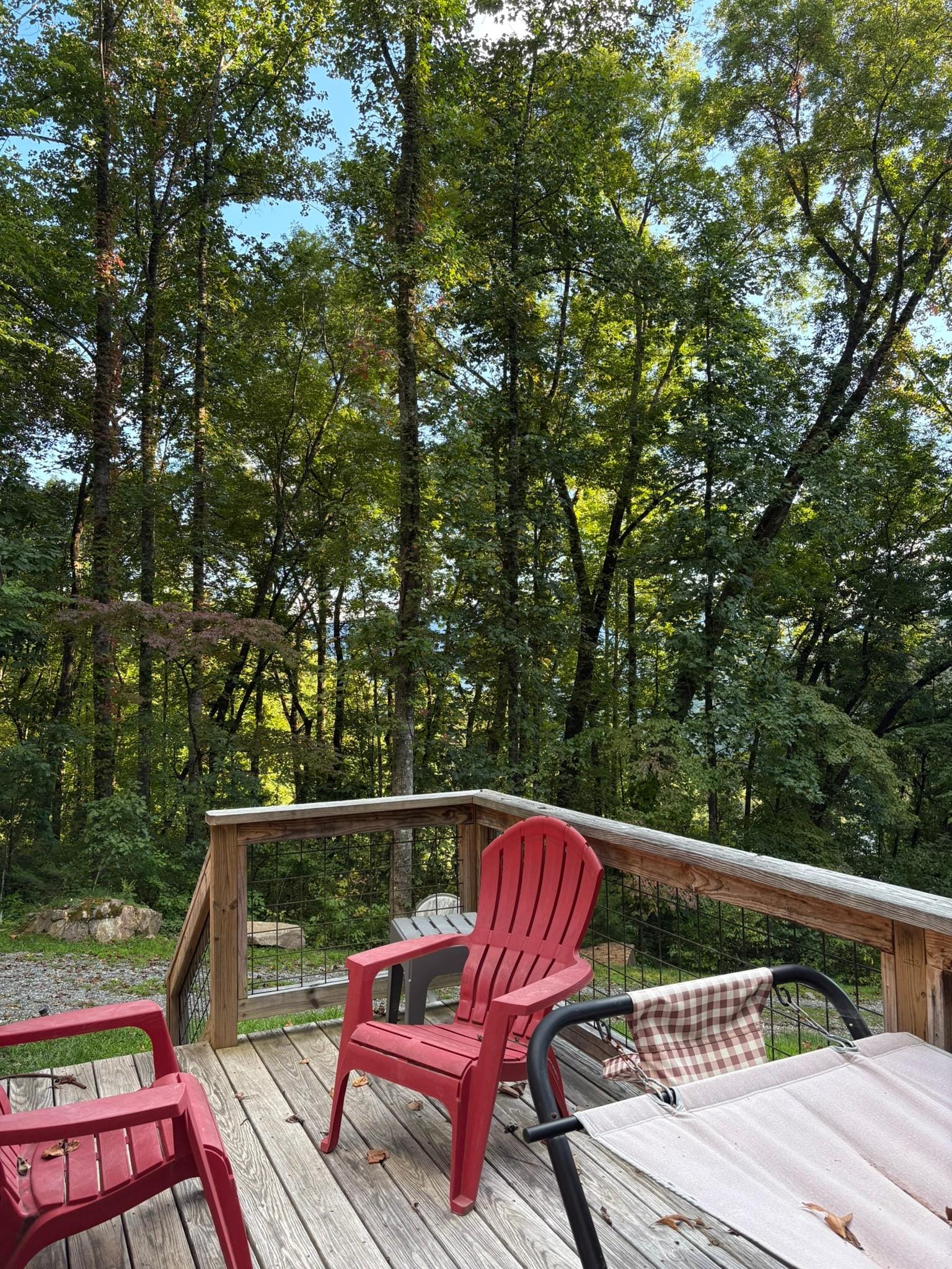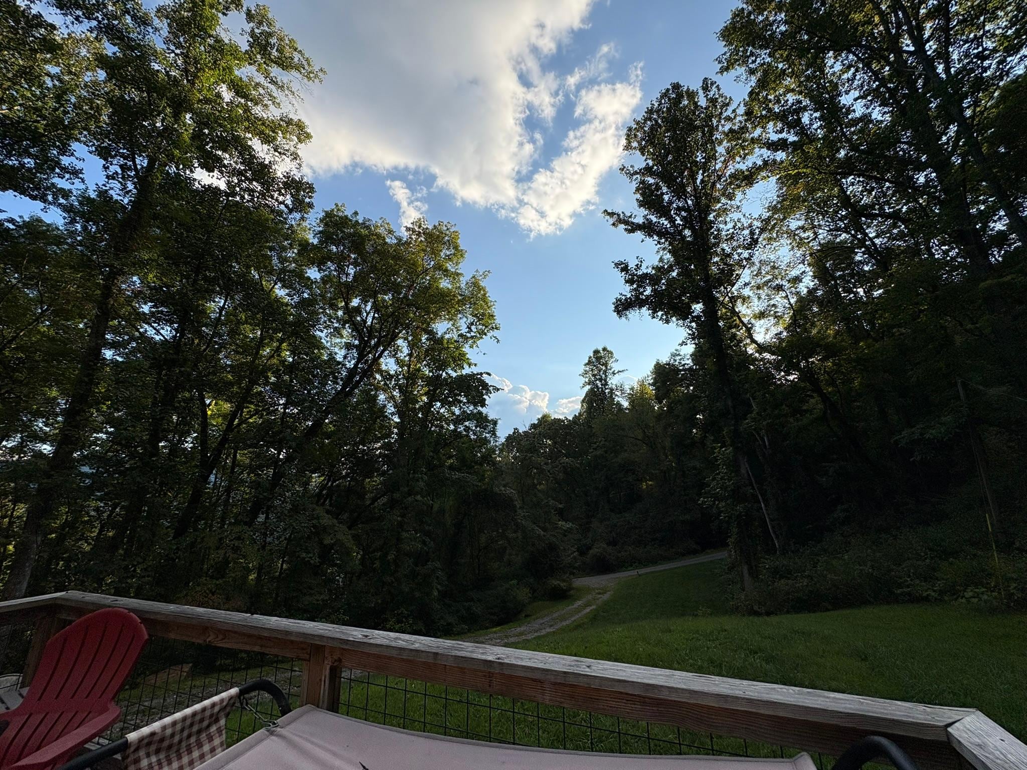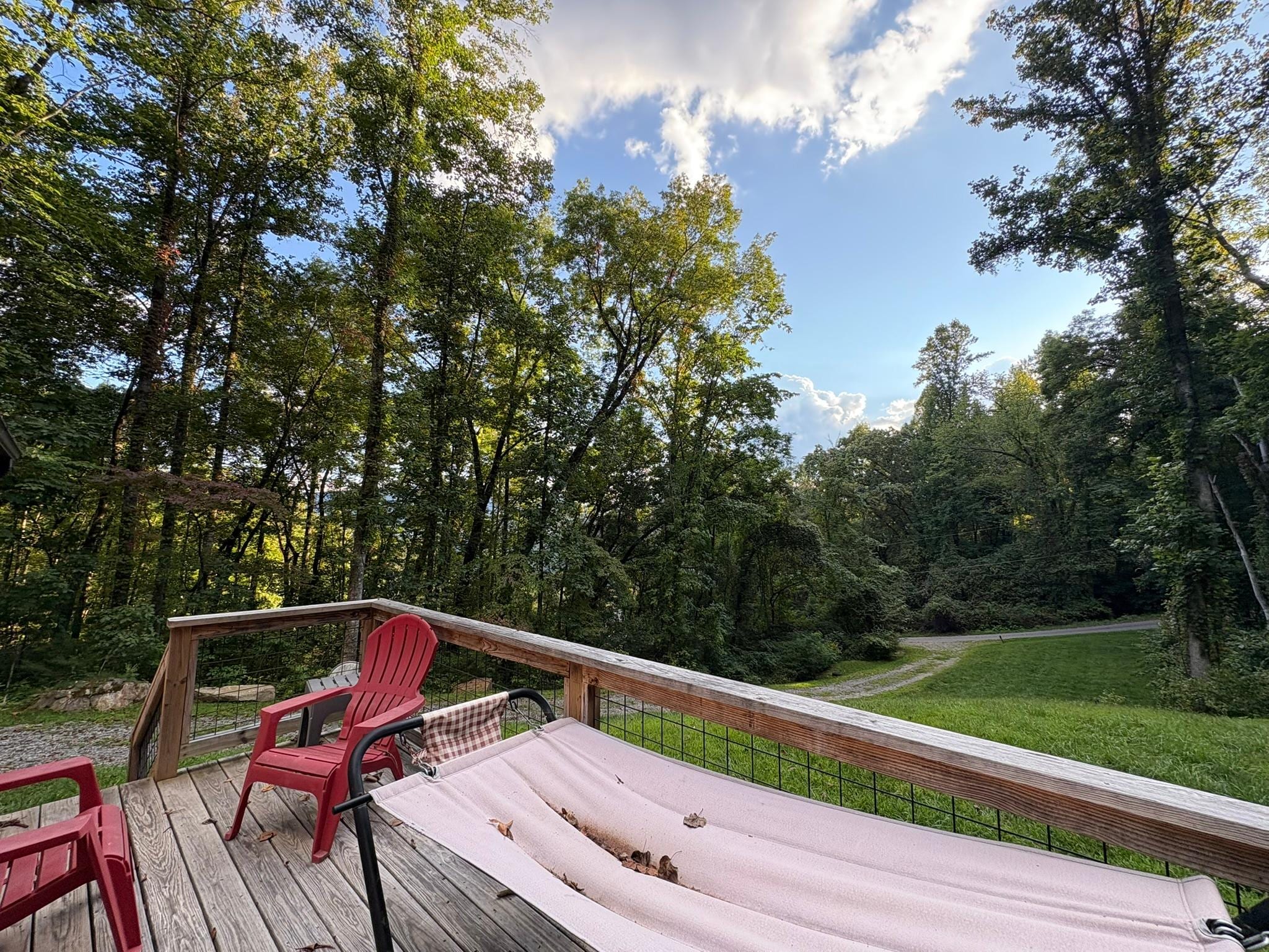 Winding road cabin screen front porch uncovered back porch