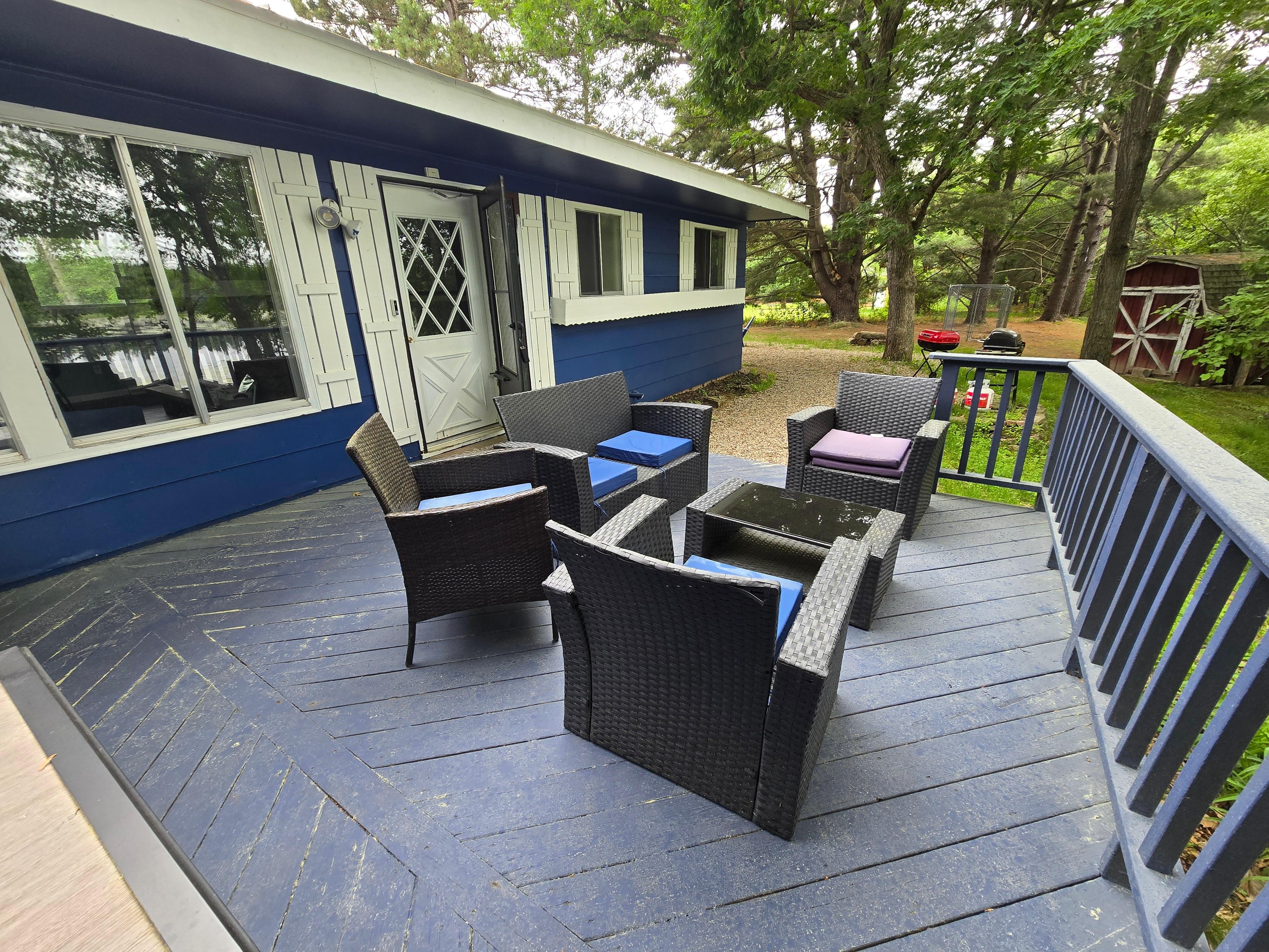 Welcome to Two Lakes cottage in between the towns of Waupaca and King. This beautiful two-bedroom cottage sleeps seven and offers seclusion and quiet but is still only 5 minutes from the hustle and bustle of Downtown Waupaca and the nightlife of the Chain Oâ Lakes. If it's a relaxing vacation you're looking to enjoy. Relax on our large deck and enjoy the view of the lake behind the house. If it's drinks and live music that toots your horn take the five-minute car ride or 15 min bike ride to the Chain to party.