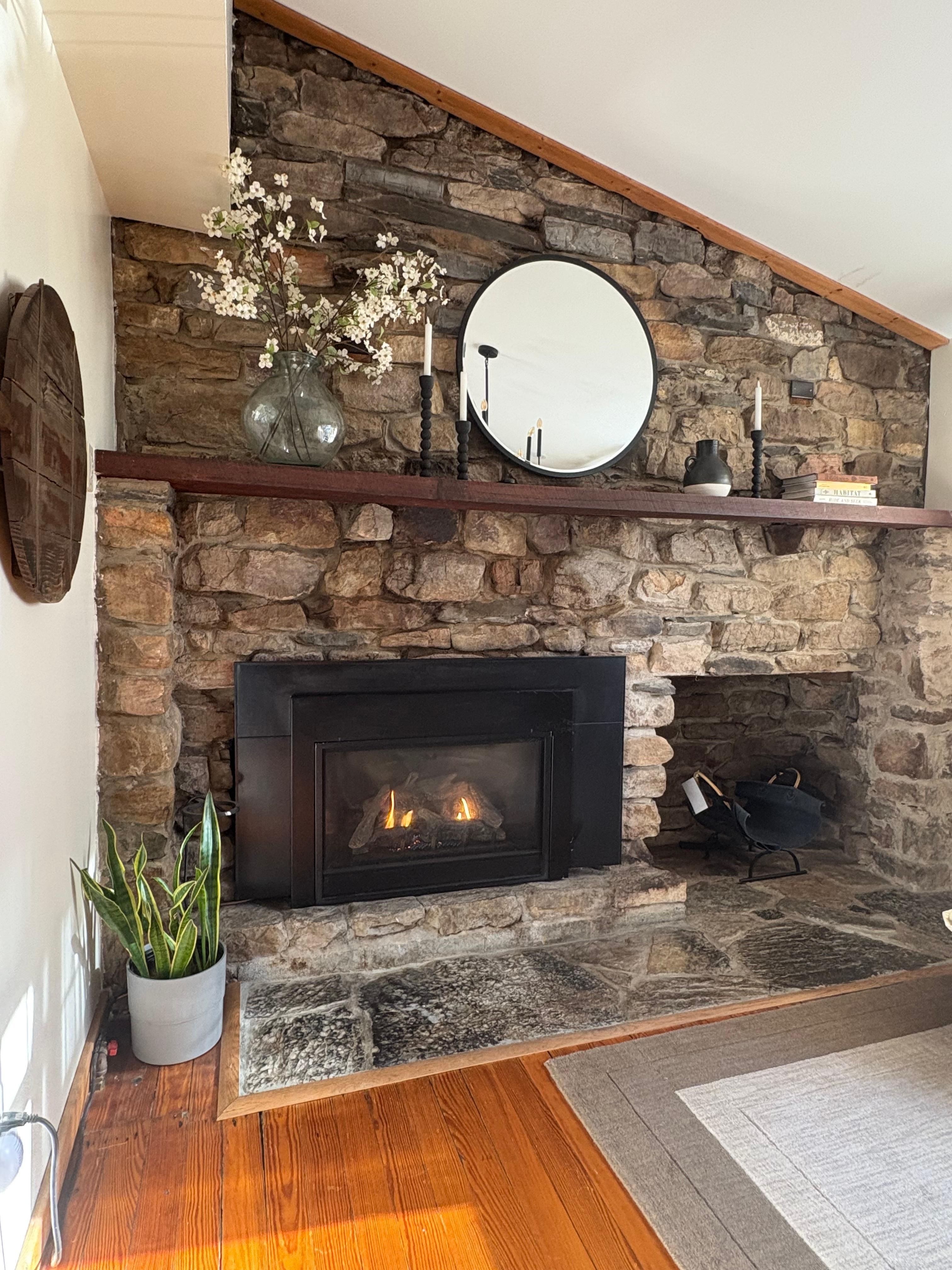 â° Indoor Fireplace built with river rocks