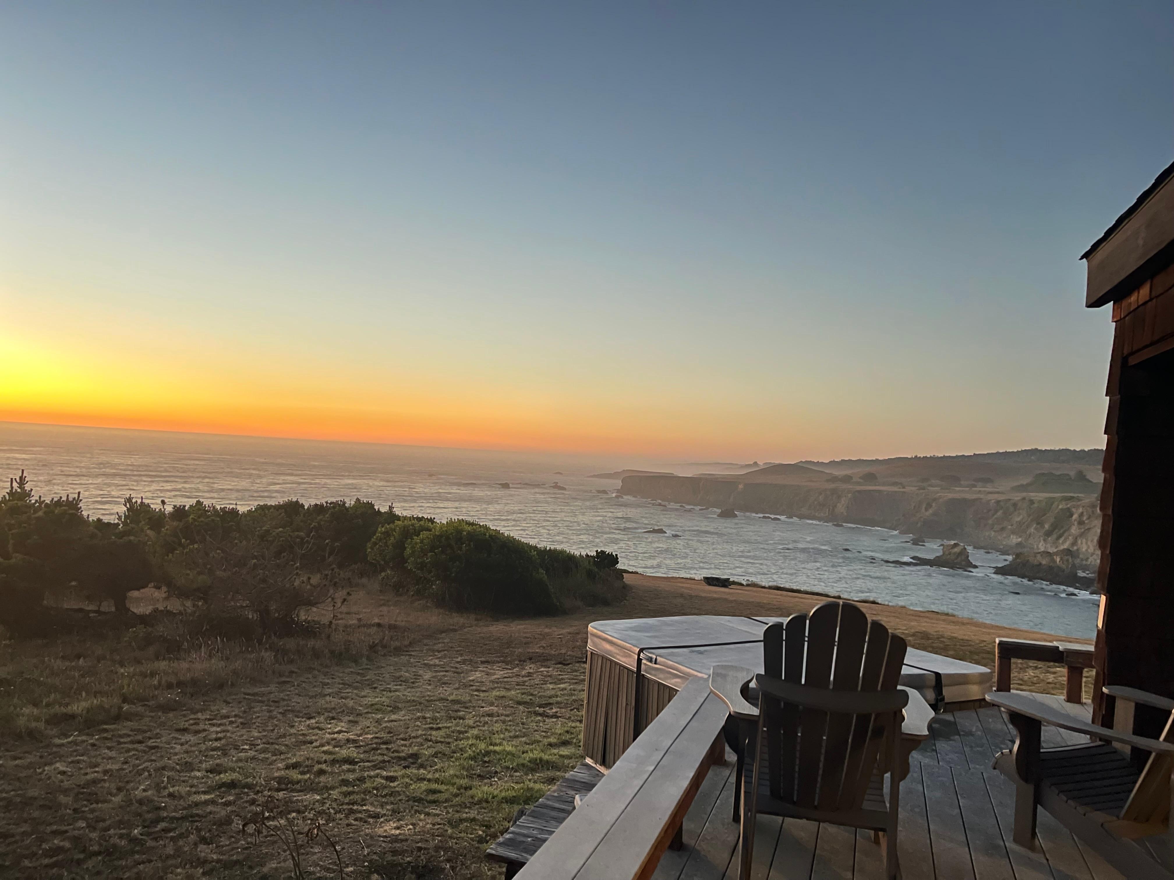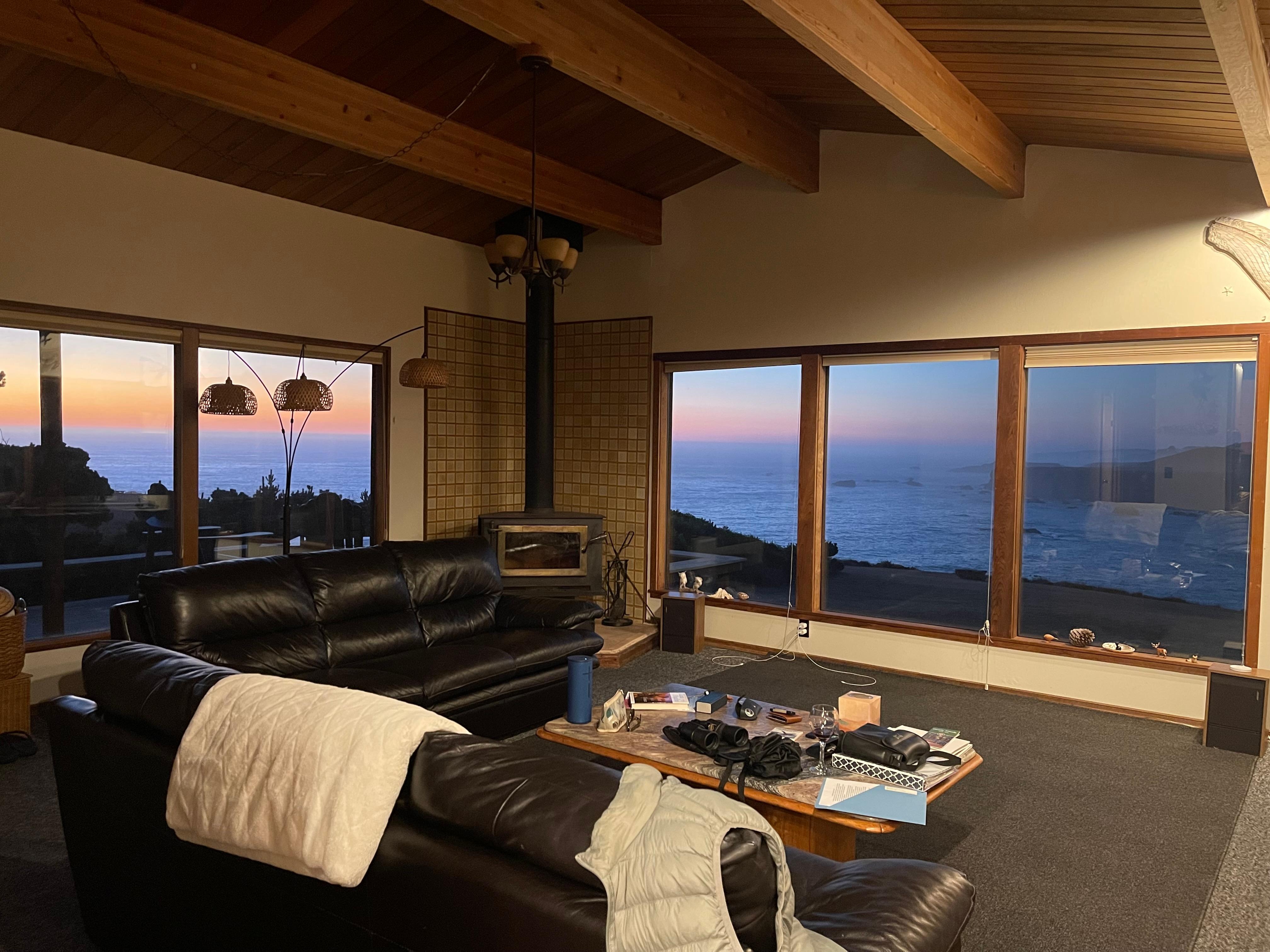 Ă seulement dix minutes au sud du village historique de Mendocino et Ă seulement 3 minutes au sud du cĂ©lĂšbre cinĂ©ma Heritage House Inn, TIDEPOOL est une retraite unique en bord de mer au sommet d'une falaise - une spacieuse chambre de 3 chambres, 2. 5 salles de bains perchĂ©e Ă 100 pieds au-dessus de Whitesboro, une ville pittoresque. Crique. Son design en forme de boĂźte angulaire, ses plafonds avec poutres apparentes et ses intĂ©rieurs et extĂ©rieurs en sĂ©quoia rappellent le style architectural de Sea Ranch. Un vĂ©ritable mur de verre du sol au plafond de soixante pieds recouvrant les piĂšces de vie et les salles de bronzage vous plonge dans le balayage panoramique de la cĂŽte escarpĂ©e en eau vive d'Albion Headlands, de l'anse de Whitesboro et de l'ocĂ©an Pacifique. Asseyez-vous Ă l'intĂ©rieur ou Ă l'extĂ©rieur sur le pont protĂ©gĂ© du vent ou dans le bain Ă remous, Ă la hauteur des yeux avec des balbuzards pĂȘcheurs, des pĂ©licans, des faucons et des goĂ©lands et profitez de la procession sans arrĂȘt de la houle qui s'Ă©crase sur les rochers. Les pĂ©licans et les balbuzards pĂȘcheurs flottent toute la journĂ©e au-dessus de la crique, plongeant dans lâeau pour les sushis locaux. Au cours de leurs migrations saisonniĂšres, vous assisterez Ă la parade des becs, des nageoires et des douves de baleines grises du Pacifique.