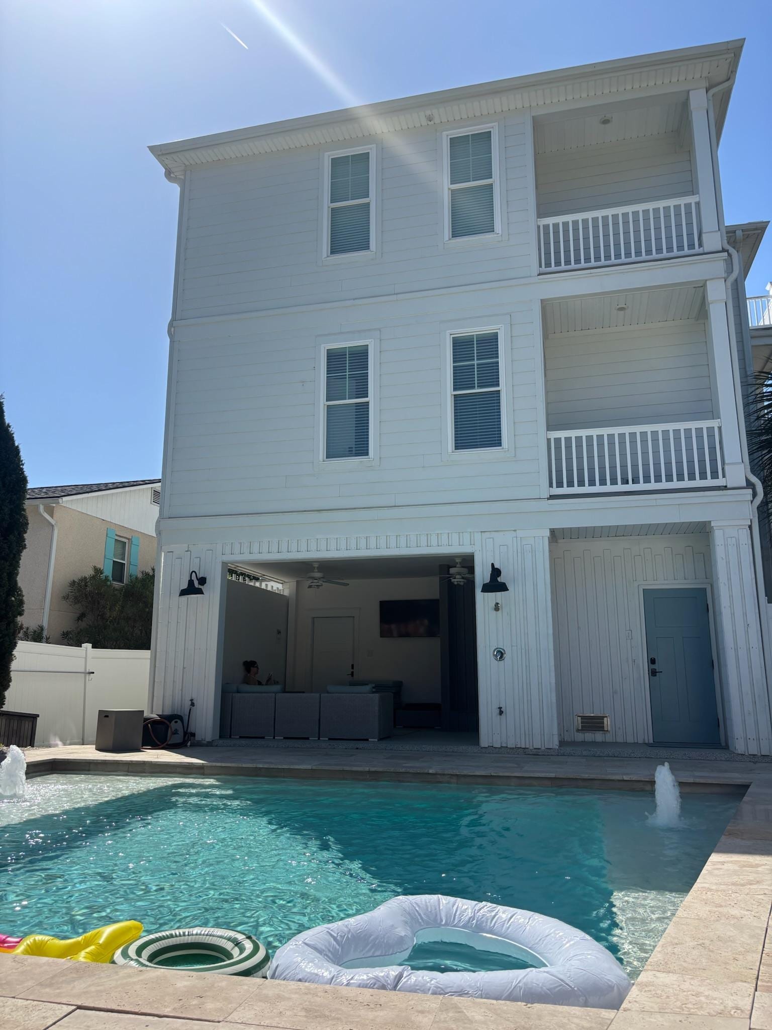 The house was absolutely beautiful! It was very roomy for the eight of us. We enjoyed coffee out on the deck each morning. The kitchen was well-equipped with everything we needed, and we appreciated the high-end appliances. The house is updated, decor is charming, and the beds are super comfortable. The house is located in a quiet neighborhood and is an easy walk to the beach, shops and restaurants. We enjoyed the heated pool, and the outdoor space! It was great having an elevator which was used a lot. The owner was very responsive and easy to work with. We would definitely rent this house again!