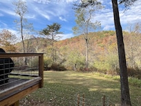 While this cabin is in the mountains, we have a large yard which is perfect for kids running and playing or for your dog to enjoy the free space. There's a great view and a lot of useable land. We also have a new fire pit.