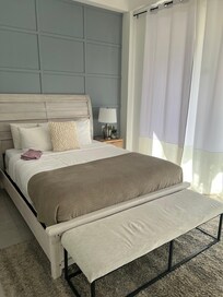 This air-conditioned three-bedroom villa has one king bed, one queen bed, two twin beds and one queen sofa bed, two bathrooms with shower, hairdryers, one fully equipped kitchen, dining and living area with amazing view, washer and dryer. Access to the private patio and pool area from the living room or master bedroom. Free Wi-Fi and Smart TVâs in all rooms.