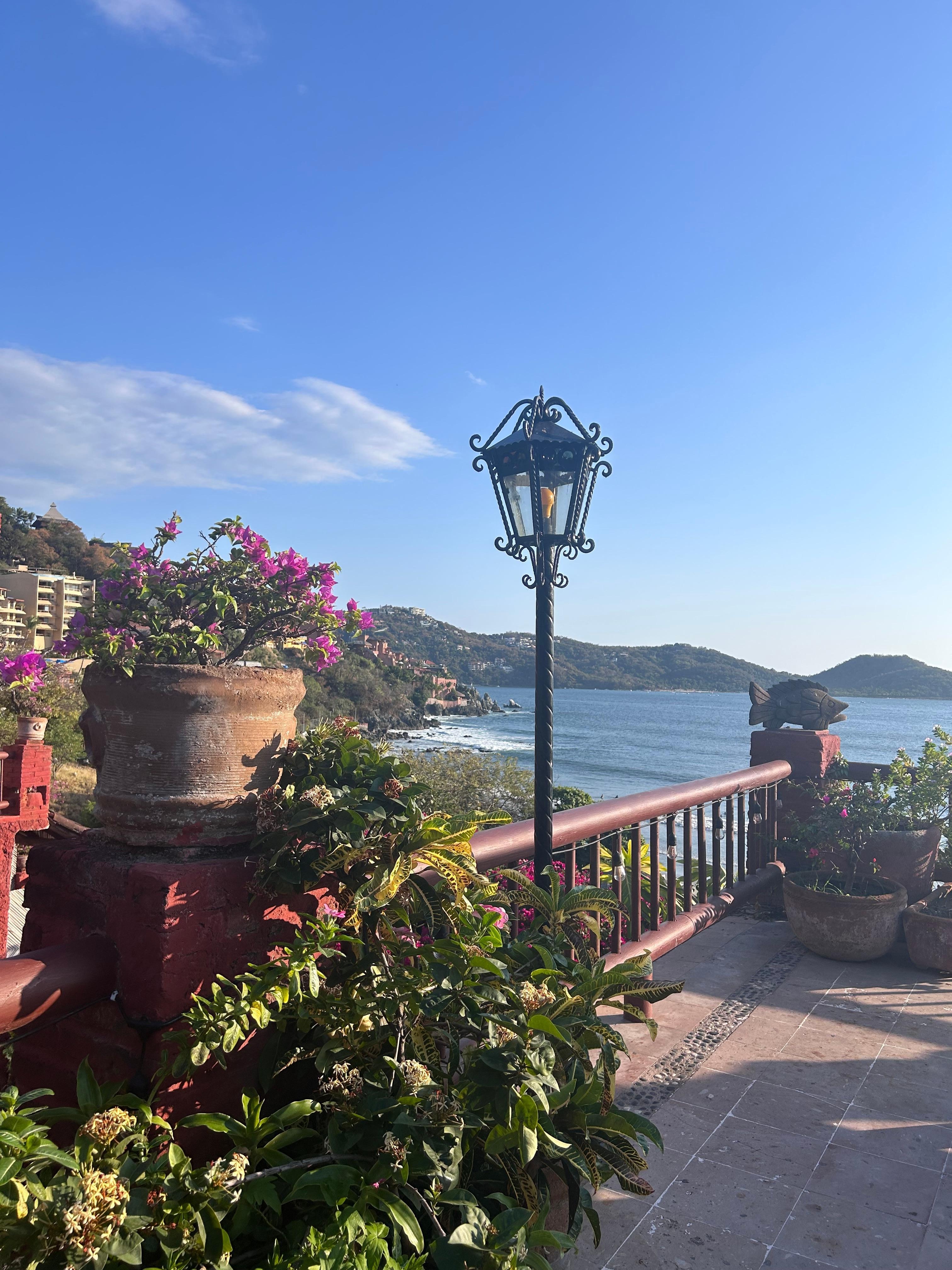 1,300SF with 2 bedrooms, 2 bathrooms and 3 decks - one off of each bedroom overlooking the pool and the beautiful valley of Zihuatanejo, and one across the entire front of the unit just above the Aura del Mar facade. The master bedroom has a king bed and en suite bath. The second bedroom has two double beds. The master bath has double sinks, and both have stand-up showers. The great room is beautifully appointed in Zihuatanejo-style and the kitchen is equipped for people who love to cook. And, the building has an advanced water filtration system, which makes the water from the taps drinkable, even for those with sensitive stomachs.
