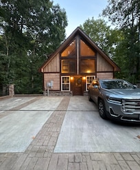Greenwood Lodge- Located only 3 min to the Pigeon Forge Parkway in Woodridge Village. Across the Parkway 1 mile from The Island. Easy in and out drive to all the action! Greenwood Lodge has lots of wood, high quality finishes and a stone gas fireplace! The entrance brings you into the main floor with a towering vault ceiling and iron railing. The living room has a relaxing space with a 55" smart tv to enjoy. The kitchen is well stocked with two coffee pots(Keurig and Regular), plenty of cookware and dining ware. Also a smooth top slide range, fridge, micro, and dishwasher. The open kitchen has a lot of granite and a seated bar top for two. Looking out from the kitchen shows the custom "tree" dining table for 8! The main floor boast a bedroom with king bed and smart TV. Also has a full bath room with a custom tile shower and granite vanity! The walk deck on the main floor is where some relaxing will take place! The deck is high in the trees with the hot tub awaiting your arrival! Plenty of chairs and a table accompanies your guest for some outside sitting. Walking up the beautiful staircase leads you to the loft. It has a great seating area that overlooks the living area that doubles as a sleeping area with a pull out futon for additional guests. The loft bedroom is very large with a king bed and smart TV and has an attached full bathroom with a custom tile shower and large vanity! Going downstairs will take you to the game area with lots of fun! There is a 75" smart tv, full pool table, dart board, and multicade arcade games! There is also a relaxing couch that pulls out to make a bed for additional guests. There is a full laundry room with washer and dryer. The downstairs has a king suite with smart TV and a full bath across the hall. The bath has a tiled shower/tub and granite vanity. Walking out the back door leads you to the lower deck with lounge chairs and a bistro table! There is ample parking for 3 cars(possibly 4) outside with lots lighting. Greenwood Lodge is only steps from the community pool! (Open mid May-mid October)