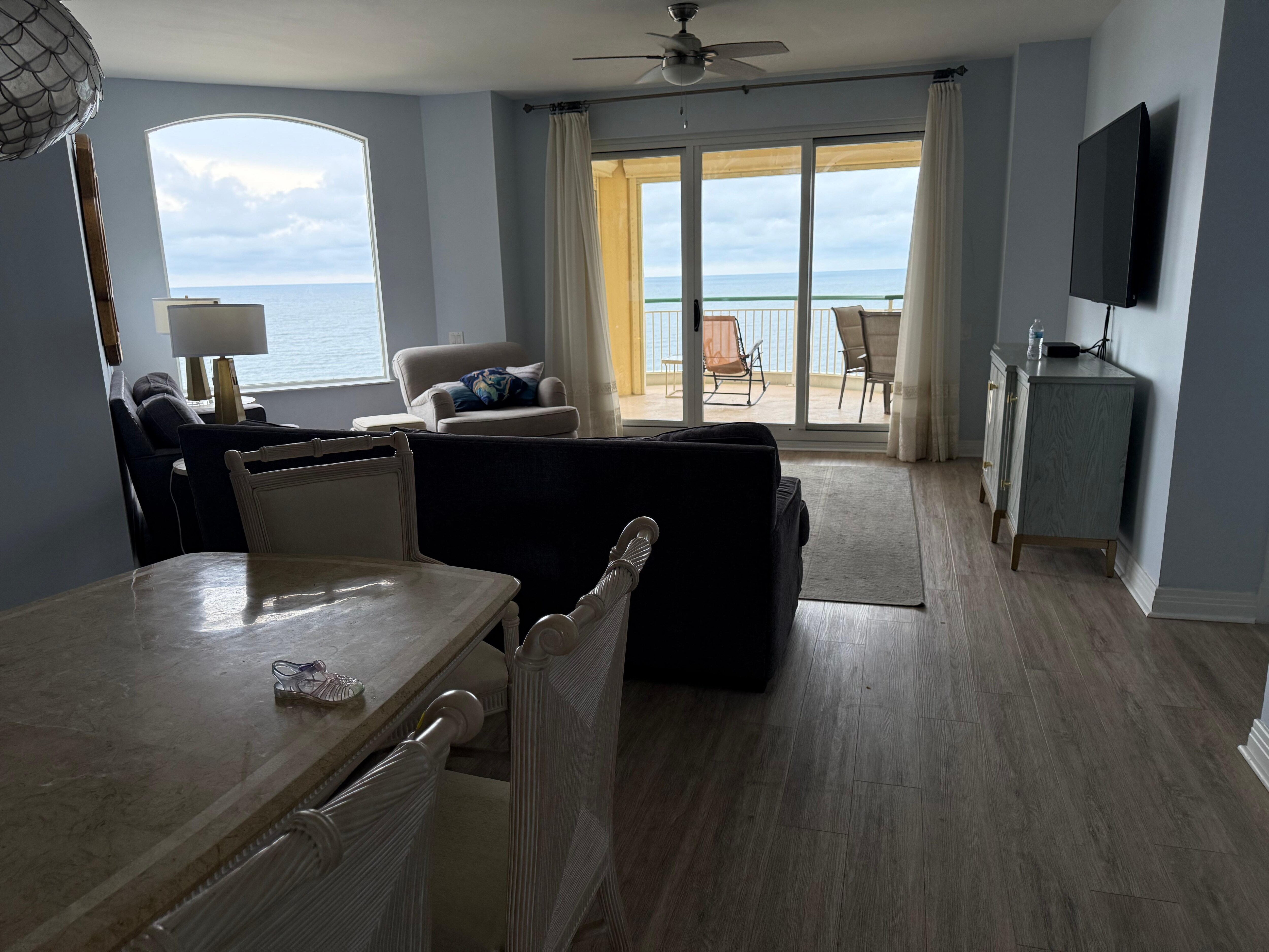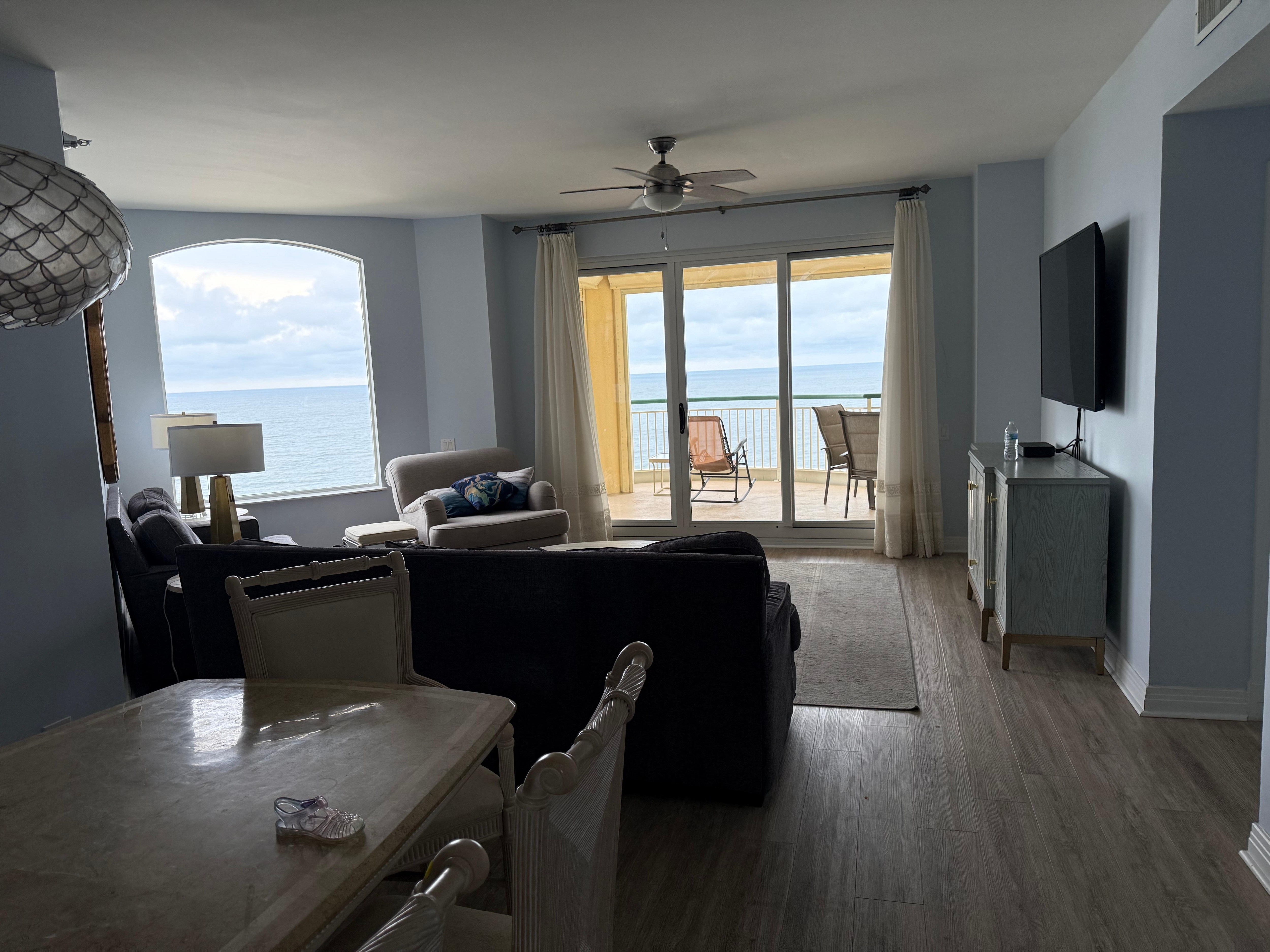 Exclusive Beach Colony is located on 11 acres of fabulous beachfront. The ingenious angular living room design transforms every residence into a Corner unit. Wall-to-wall sliding doors and adjoining windows actually wrap around the living room, filling it with light, and revealing the panoramic beauty of the Gulf. The sweeping 300 SF terrace will be a favorite spot for quiet moments and lively gatherings alike. The uniquely situated Master Bath is a world unto itself. This 14th floor luxury condo was beautifully remodeled in March, 2021. New flooring is luxury vinyl plank throughout with soft, cool blue tones throughout.