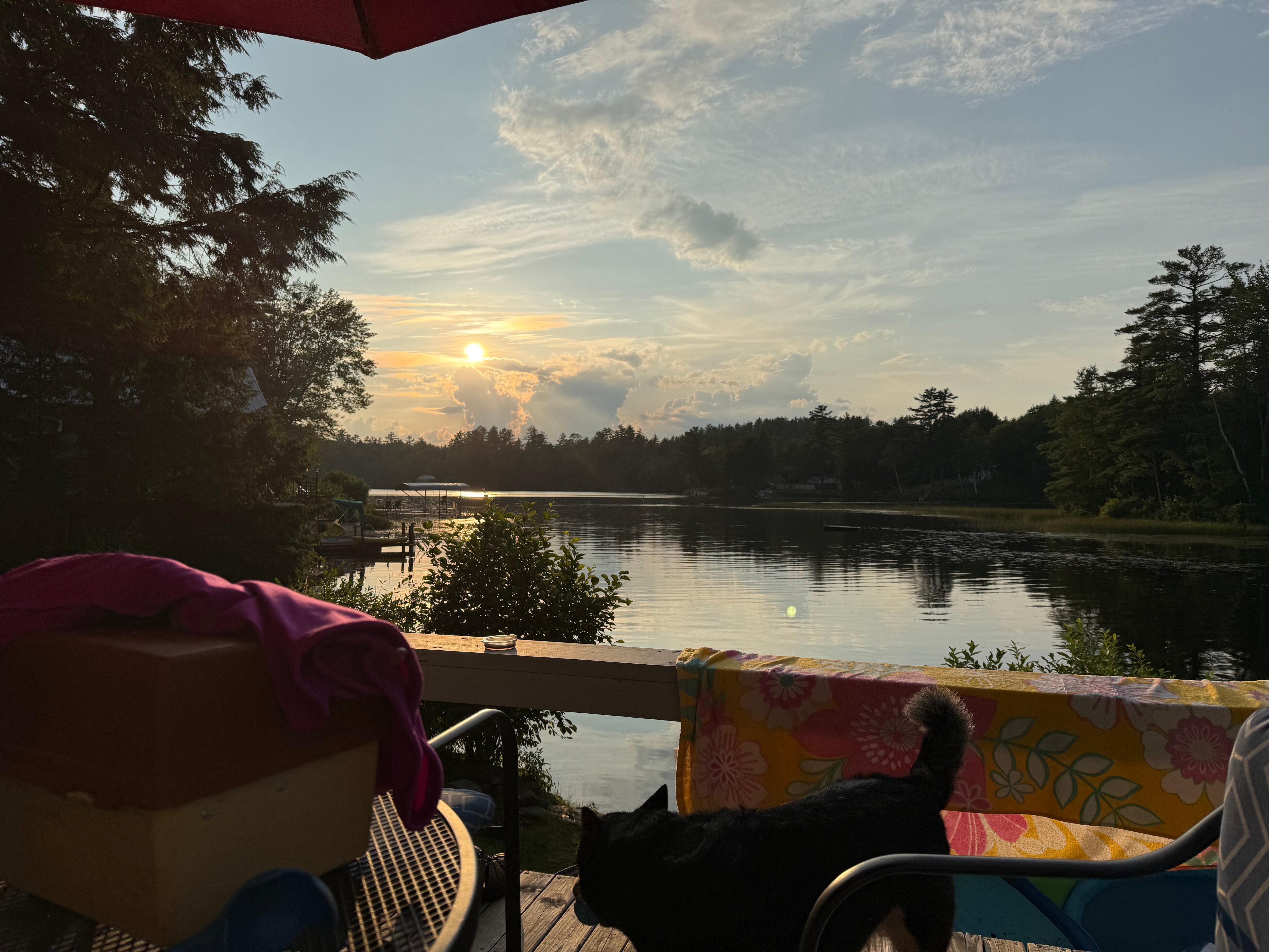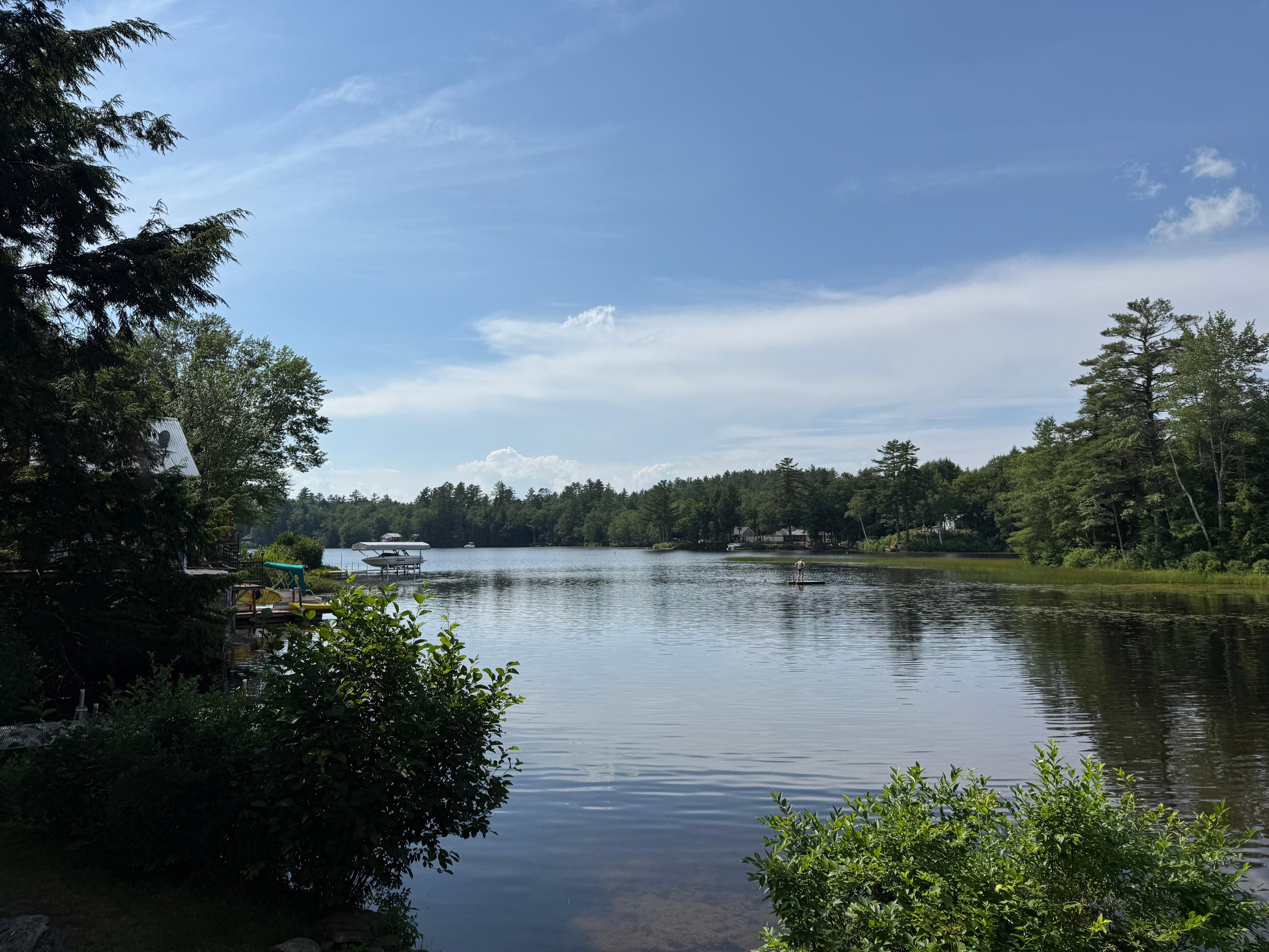 This lake house is an ideal relaxing getaway. My family stayed for 5 nights and enjoyed the well-equipped kitchen, beautiful deck, and lake amenities. We had our meals on the deck by sunset, went swimming, floating, canoeing, and built a fire each night as well. Don't miss the adorable local t-shirt shop, and the nearby walking trails, which are lovely, and be sure to hit up Balthazar's Ice Shack for ice cream.