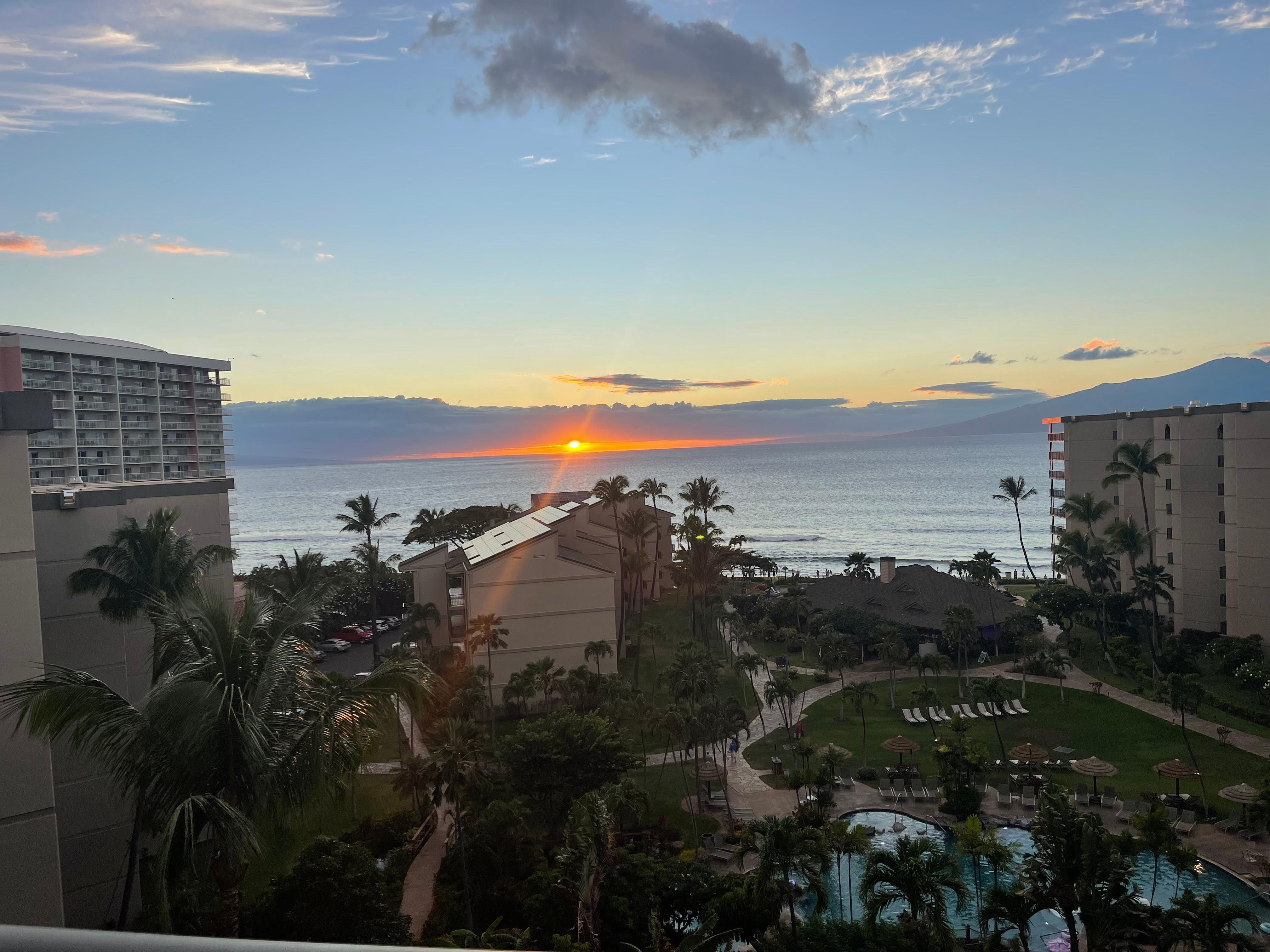 Welcome to your ultimate getaway in paradise at the Aston Kaanapali Shores Unit 933. Be on top of it all in this top-floor penthouse suite offering stunning 180 degree ocean and pool views. From your personal lanai you will enjoy the sparkling blue of the ocean, breathtaking sunsets, spectacular lighting of the pool areas in the evening, lush tropical landscaping of the complex, and during winter the frolicking of the whales as they play in the ocean.