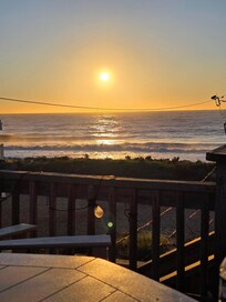 The Upper Deck is just steps from the beach...come up the stairs to the deck and you see the sunrise over the ocean and sunset over the Assawoman Bay.