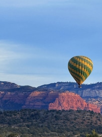 We are tucked into a quiet, residential West Sedona neighborhood with a beautiful view of the Sedona landscape of lush greenery and red rocks. Gaze at Coffee Pot Rock from the patio and backyard, and hike the Sugarloaf Trailhead just next to our home. Just under a mile from groceries, coffee, restaurants, and shopping in West Sedona, and a 10 minute drive to Sedona Main Street.