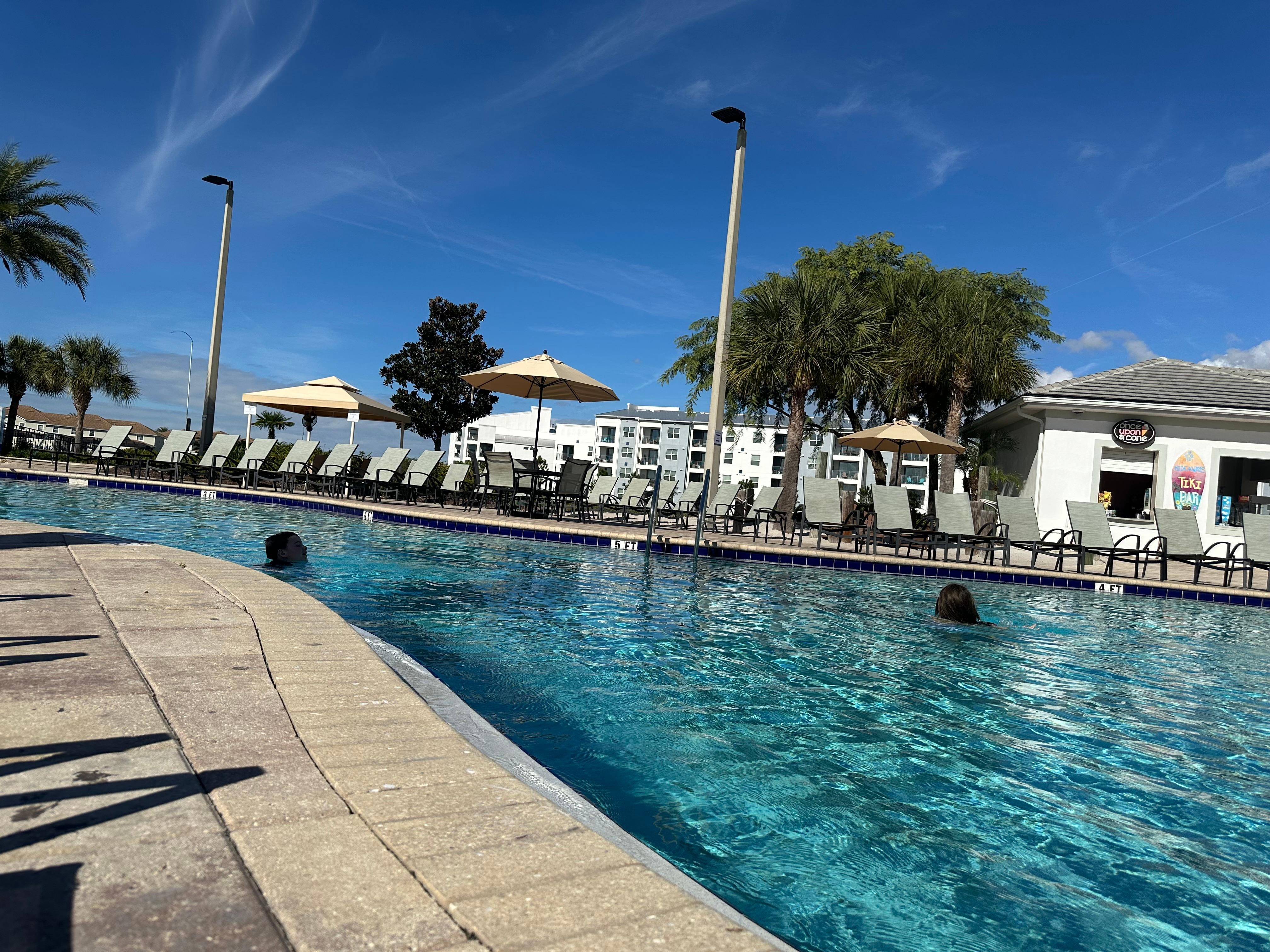 Designed for families and built for fun, Storey Lake Resort offers it all! Situated around a scenic lake with a variety of water amenities and activities including a tropical resort pool with a lazy river, two waterslides, and a children's splash pad. Relax in the spa or sunbathe on the terrace and sand beach areas. Fishing, canoe & kayak rentals are available at the community dock. Enjoy a cold beverage or ice cream at the resortâs poolside cafĂ©. Donât forget to get in a game of mini-golf, volleyball or basketball. Escape the sun at the covered tiki bar or venture inside the resortâs clubhouse, which includes a guest lounge area, fitness center, and business center. Resort Disclaimer: Guests can use resort amenities, some with additional guest fees. We're not liable for closures or changes, and refunds won't be provided.
