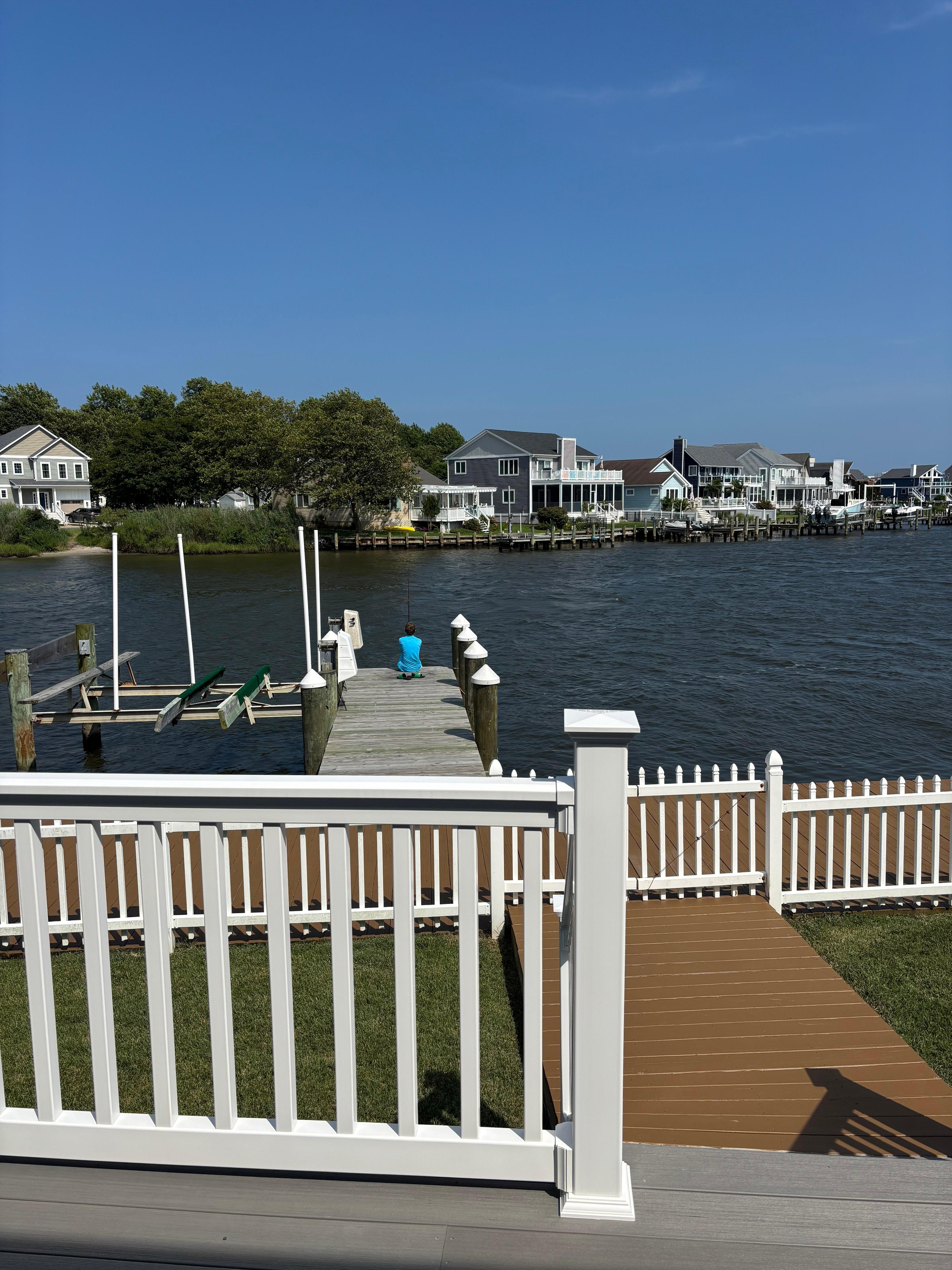 Step outside to the expansive outdoor deck, where you'll find panoramic water views and plenty of space to relax. Start your day with a cup of coffee on the deck as the sun rises, or enjoy alfresco dining at one of two tables, one of which is covered by an umbrella for your comfort, whether you prefer the sun or shade. For those looking to relax, the private dock is the perfect spot to cast a line and enjoy the peaceful waters. You can spend hours fishing, crabbing, or simply soaking in the serene waterfront atmosphere. The fenced-in yard provides a safe and fun space for kids to play.