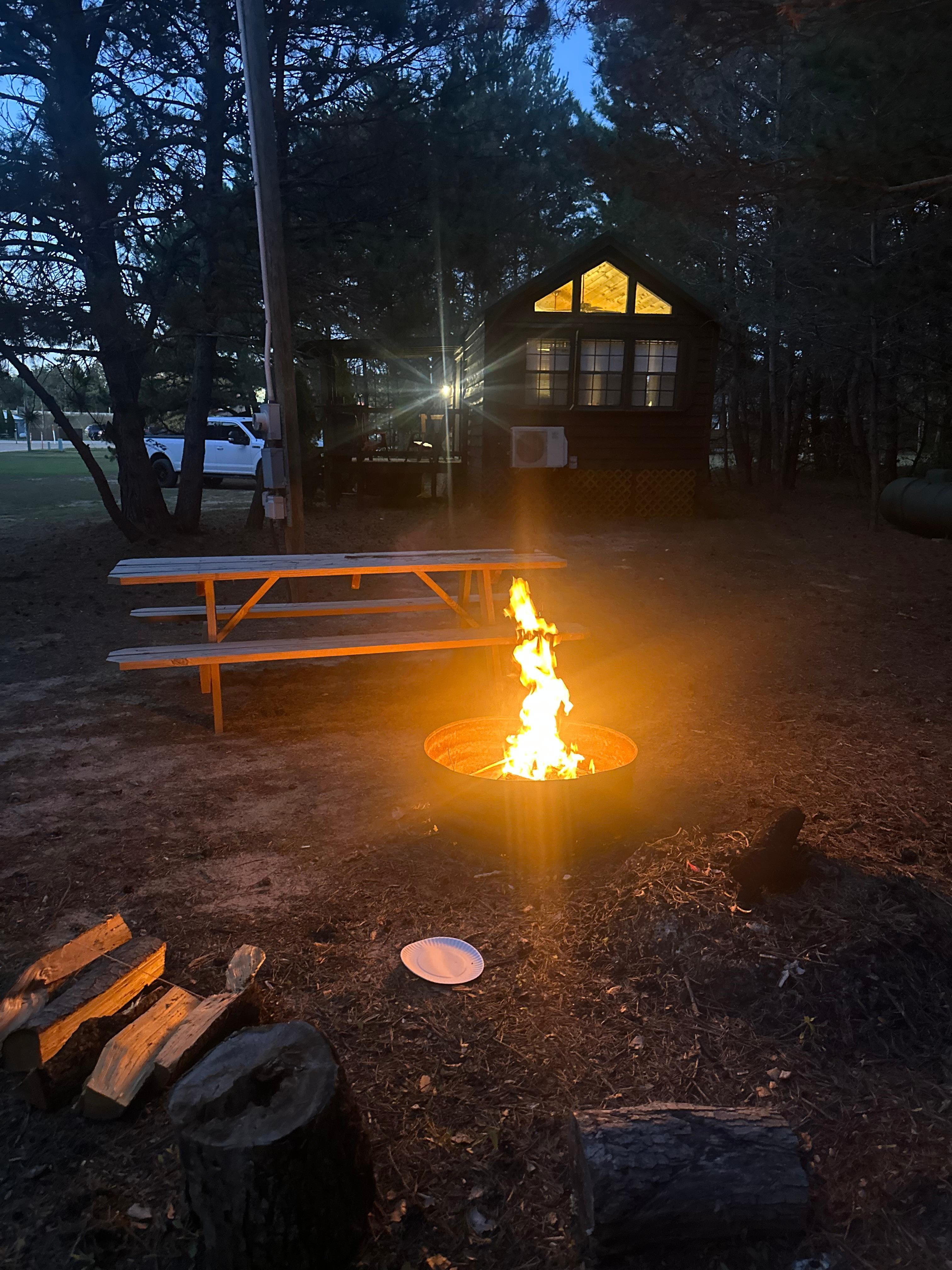 The cabin was adorable. My dog(all brown) enjoyed herself but almost got lost in the complete darkness. Very peaceful at night. Would I do it again you ask? Yes