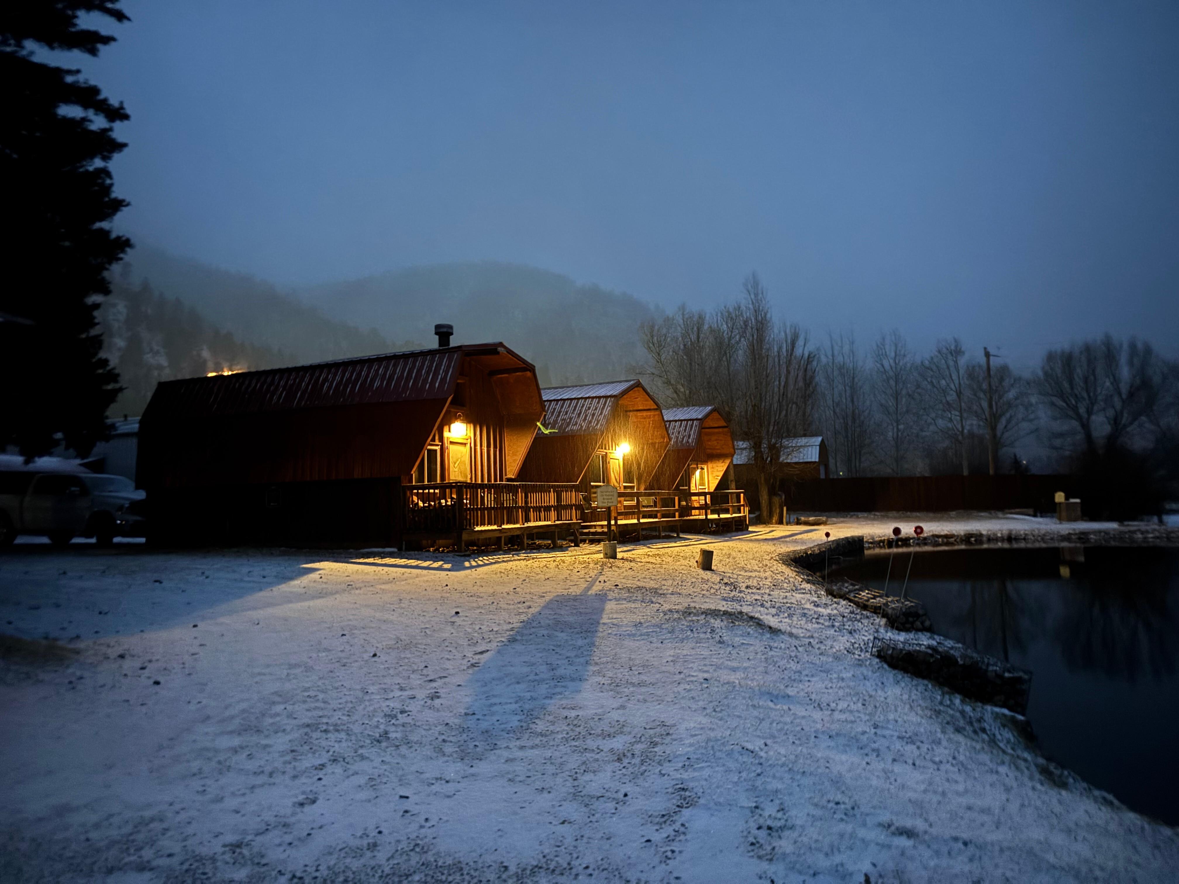 Cabin 24 is a cozy one bedroom cabin with 1 queen size bed. It will accommodate a maximum of 2 people including children. This cabin has a small living room and dining room area with a gas fireplace and a kitchenette which includes a 2 burner stovetop, refrigerator, sink, microwave, coffee maker, all dishware and pots and pans. This cabin has 1 bathroom with a shower. Cabin 24 has a nice sized partially covered porch that faces the pond and mountains and is so close to the pond you could fish from the porch! This cabin is non-smoking and is pet friendly for an additional fee.