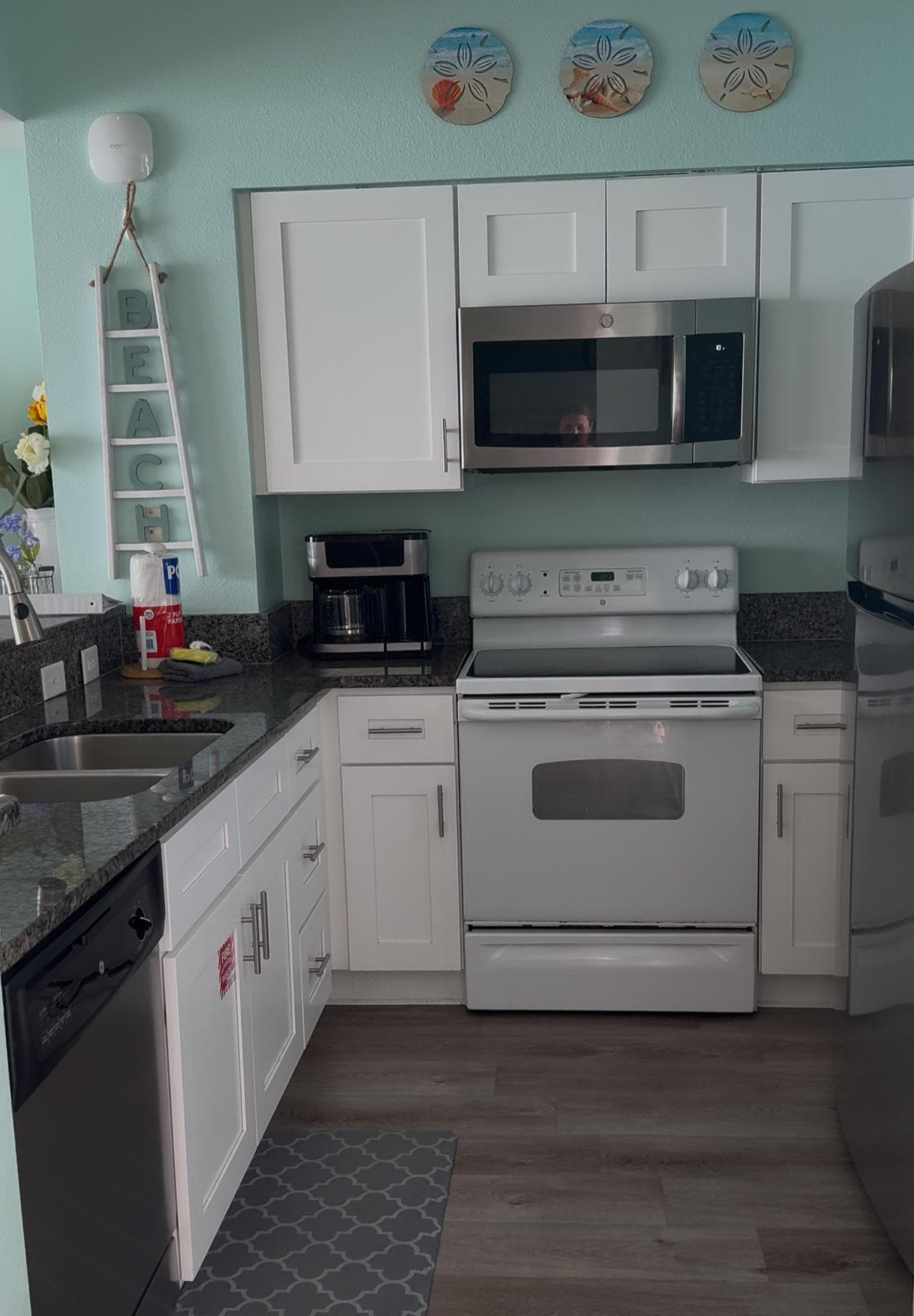 Our unit has not only been updated with fresh paint and all new furniture throughout, but also includes a new refrigerator with ice maker, and a full size washer and dryer. The fully equipped kitchen includes a combination drip/K cup coffeemaker, toaster, blender, waffle iron, and seats up to seven for dining. The living room has all new furniture including a sofa bed with upgraded mattress, electric powered recliner, and 50â smart TV. The master bedroom includes a king bed with comfortable mattress (we have back issues so a GOOD mattress is a must), and a 42âsmart TV. The second bedroom offers a twin over full bed bunks also with upgraded mattresses. All our bed pillows are non allergy quality. Both bedrooms have full bathrooms with combination tub/shower, updated granite counter & sink, convenient hair dryer, and new plush towel sets. For your convenience we have also provided a beach umbrella, 6 beach chairs, a collapsible beach wagon, coolers, and sand & water toys. You will find these items in the large deck box located on our balcony. Additionally, we have equipped our unit with board games, and you will find convenient charging ports on all our night stands and most tables in the unit.