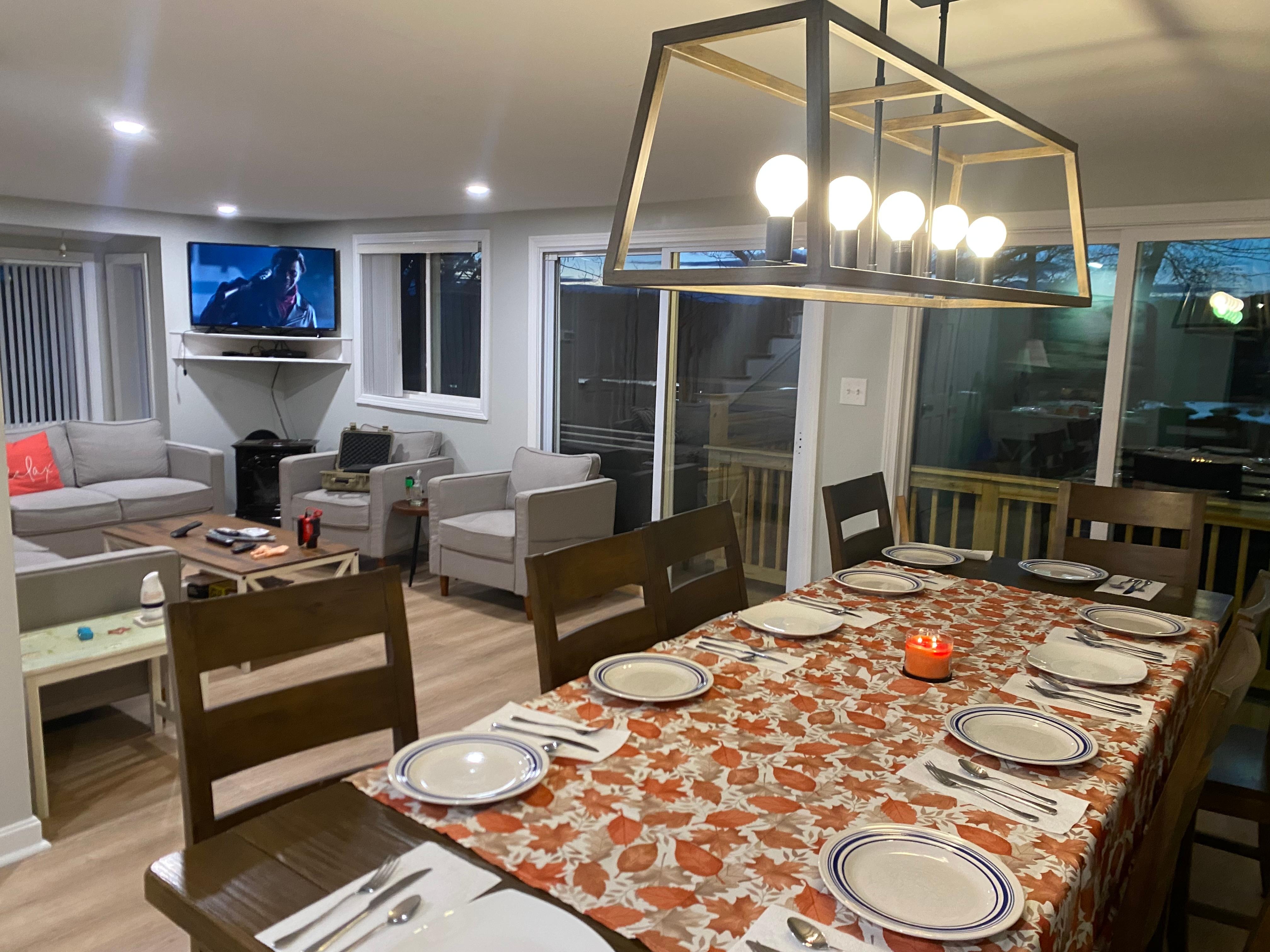 Air conditioning, Wi-Fi, large dining table that easily accommodate up to 14 guests, 2 Smart TVs, and filled with puzzles, games, art supplies, and books.